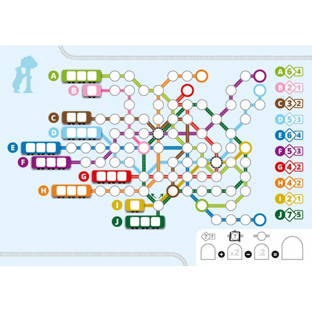 Berlin, Madrid, Amszterdam vagy Párizs – a metró oda-vissza megy a városon keresztül. Válaszd ki a megfelelő vonalat, és tervezd meg a legjobb útvonalat. Ügyesen rakd le kereszteidet, legyél gyorsabb játékostársaidnál, és jelöld meg elsőként a legtöbb győzelmi pontot érő végállomásokat. De vigyázz! Ha a vonatod idő előtt megáll, gyorsan lemaradsz. Négy különböző terv változatosságot és szórakozást hoz a játékba.