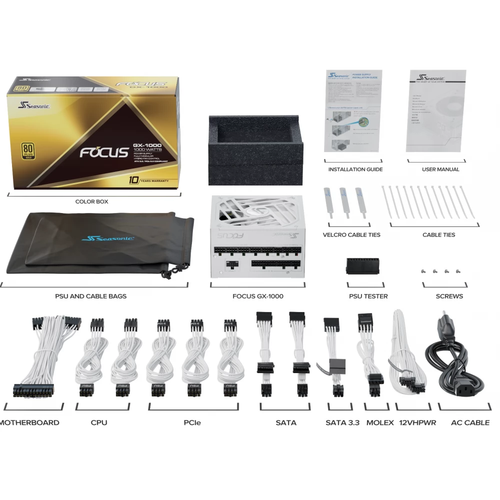 SEASONIC Focus GX 1000W PCIe5 fehér