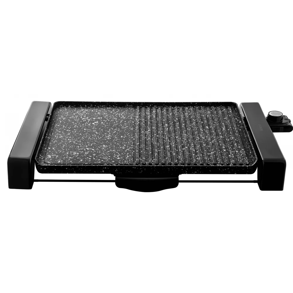 A Sencor SBG 108BK egy elektromos asztali grill, amely ideális akár otthon a balkonon vagy akár a kertben való sütésre. A kompakt kialakításnak köszönhetően könnyen hordozható. 2 grillező felülettel rendelkezik, melynek méretei 47 x 31 cm. Az egyenes felület alkalmas zöldségek, szalonna és pirítós elkészítéséhez, a bordás felületen tökéletes hal és húsételek készíthetők. Mindkét grillező felület tapadásmentes bevonattal rendelkezik, így olaj nélkül használható, így megfelel az egészséges grillezés feltételeinek. Kivehető tálcával rendelkezik a felesleges olaj számára.