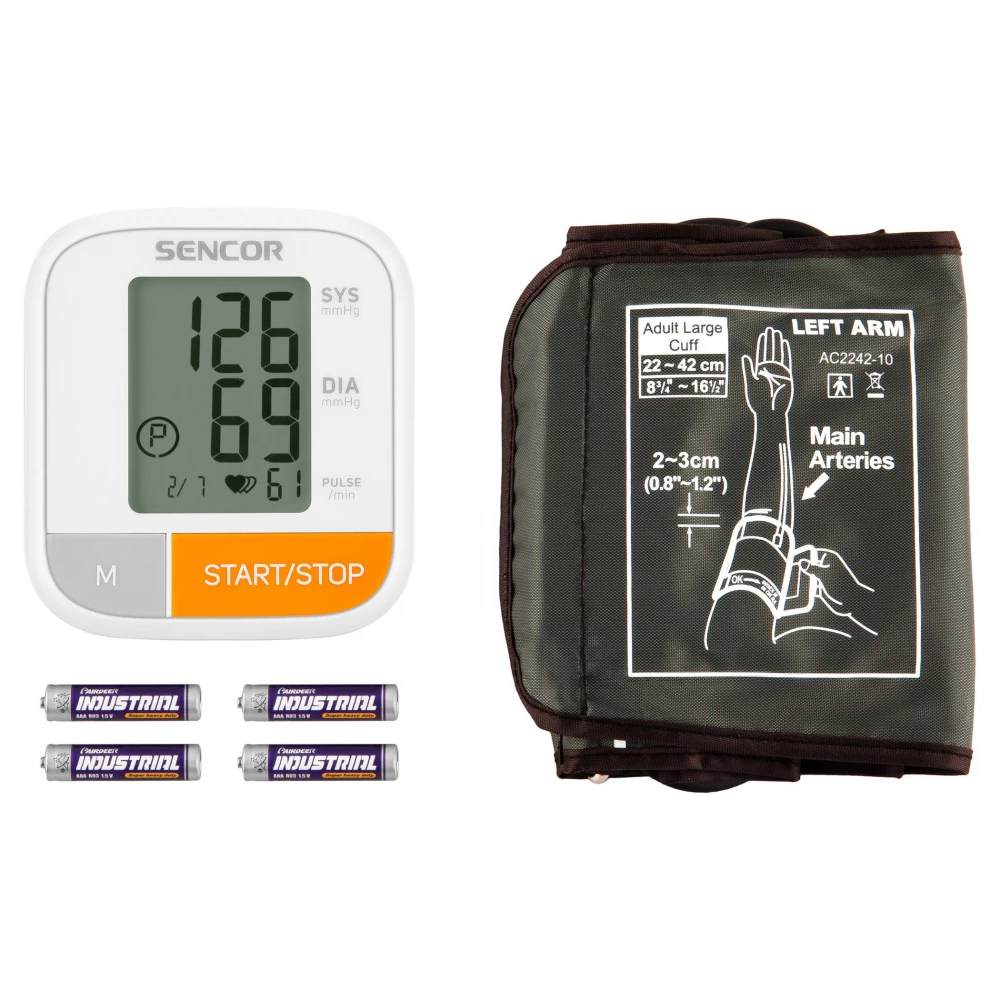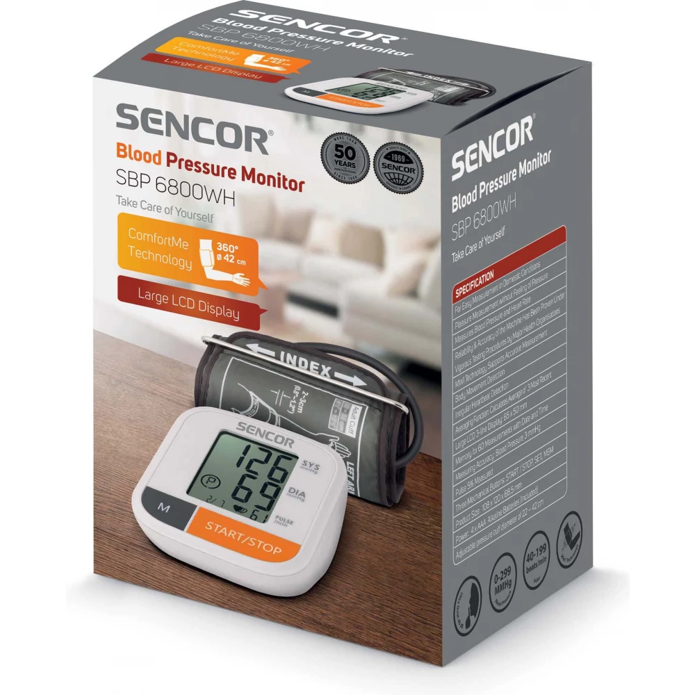 A Sencor SBP 6800WH felkaros vérnyomásmérő segítségével folyamatosan akár otthonában is ellenőrizheti vérnyomását. Az eszköz jól olvasható kijelzővel és nagy pontossággal méri a vérnyomást és a pulzusszámot. Méri a szisztolés és diasztolés vérnyomást és szívverést, illetve lehetőség van a magas vérnyomás grafikus megkülönböztetése (mérsékelt / közepes / erős hipertónia). A beépített memória az utolsó 60 mérést képes tárolni, elemcsere esetén az mentett adatok nem törlődnek.