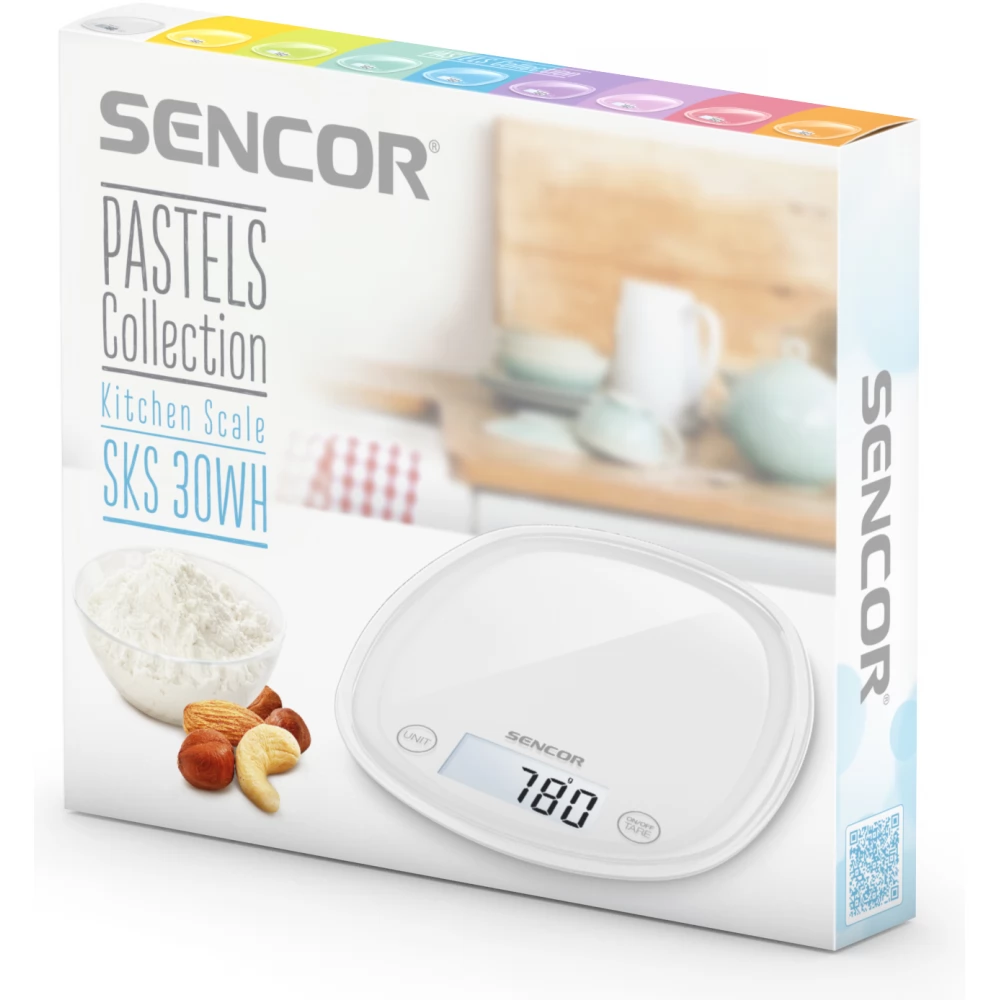 A Sencor SKS 30WH digitális mérleg ideális segítőtárs a konyhában. Kiváló minőségű, edzett borítással készült. A mérési súlyhatár 5 kg, 1 grammos mérési pontossággal. A mért adatok egyszerűen leolvashatók a beépített, háttérvilágítással rendelkező nagy LCD kijelzőről. Az mértékegységváltó rendszernek köszönhetően könnyen meghatározhatja a víz és tej térfogatát milliliterben, a szilárd hozzávalókat pedig grammban vagy fontban. A mérés maximális pontosságát 4 integrált érzékelő biztosítja. Túlterhelés esetén a készülék értesíti Önt. Tétlen állapotban az energiatakarékos funkciónak köszönhetően a készülék automatikusan kikapcsol 60 másodperc után.