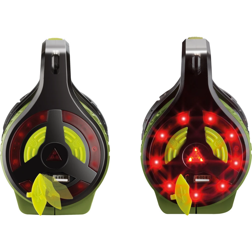 Az elemlámpa két 5W-os COB Led oldalsó lámpával és egy 1W-os piros figyelmeztető lámpával rendelkezik hátul.