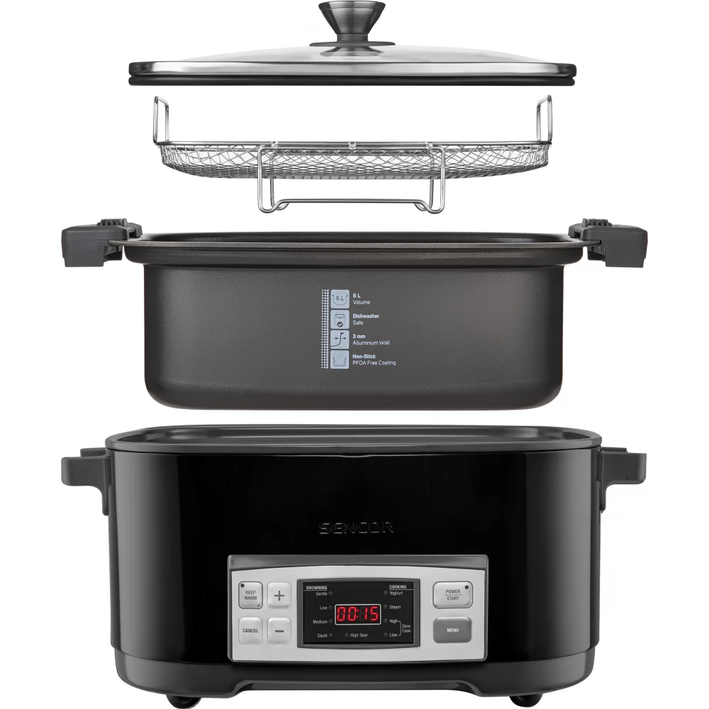 A Sencor SPR5500BK egy elektromos lassan főző készülék. A lassú főzés egy modern főzési technológia, amely megőrzi az alapanyagok ízét és illatát, és akár bármilyen zsiradék hozzáadása nélkül készítheti el kedvenc ételeit. Ezzel a multifunkciós készülékkel süthet akár olajban, párolhat vagy gőzben készítheti el az ételeket. A digitális LED kijelzőnek és a melegen tartó funkciónak köszönhetően a főzés egyszerűbb és kényelmesebb lesz, mint valaha.