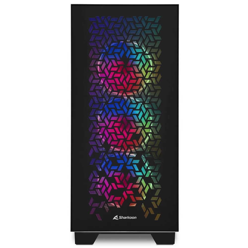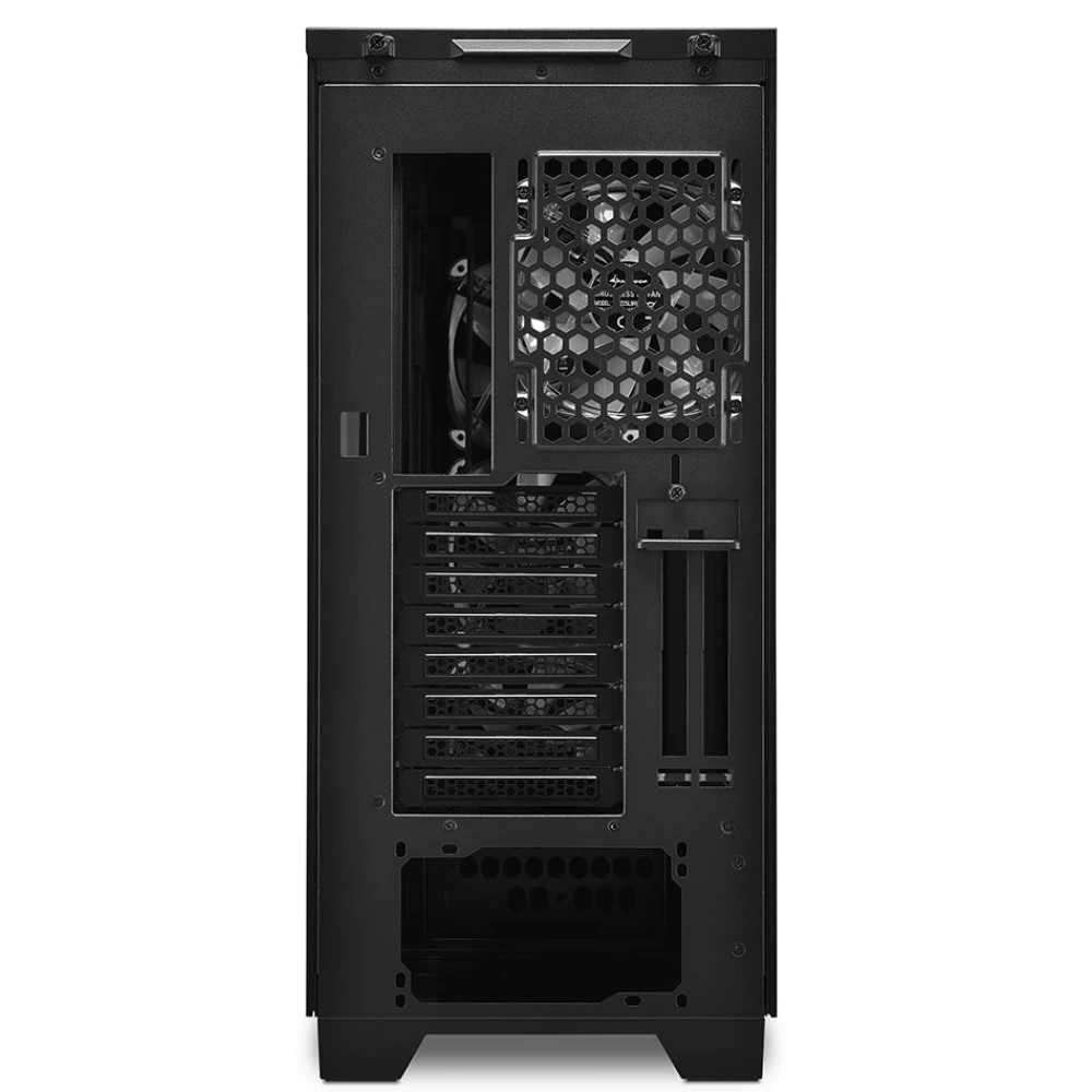 E-ATX formátumú torony kialakítású számítógépház beépített RGB ventilátorokkal.