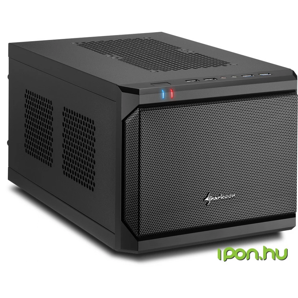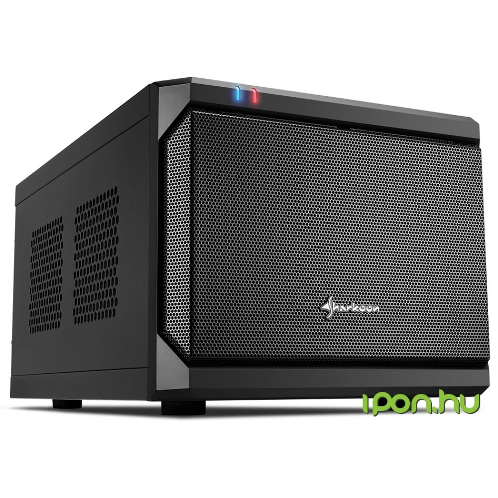 Fekete színű SHARKOON QB ONE Mini-ITX ház 2db 3,5 hellyel.