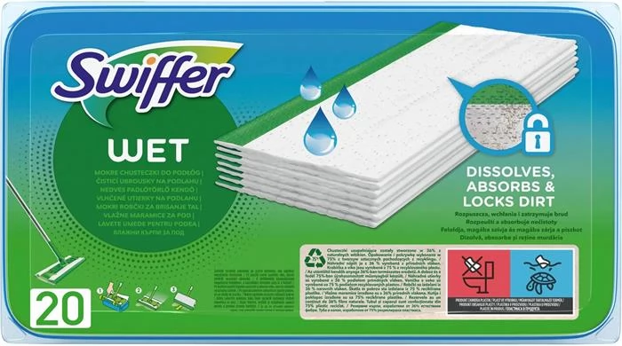 A Swiffer nedves felmosókendő intenzív szennyeződésoldó hatóanyagokat tartalmaz, melyek magukhoz vonzzák és belsejükbe zárják a piszkot a padlófelületekről. Tartsa tisztán a padlót, és gondoskodjon a jó illatról egy különleges tisztítóoldattal, amely feloldja, magához vonzza és mélyen a kendő belsejébe zárja a legmakacsabb foltokat és szennyeződéseket is, így könnyen tisztává varázsolja otthonának járólapos vagy linóleumpadló felületeit.