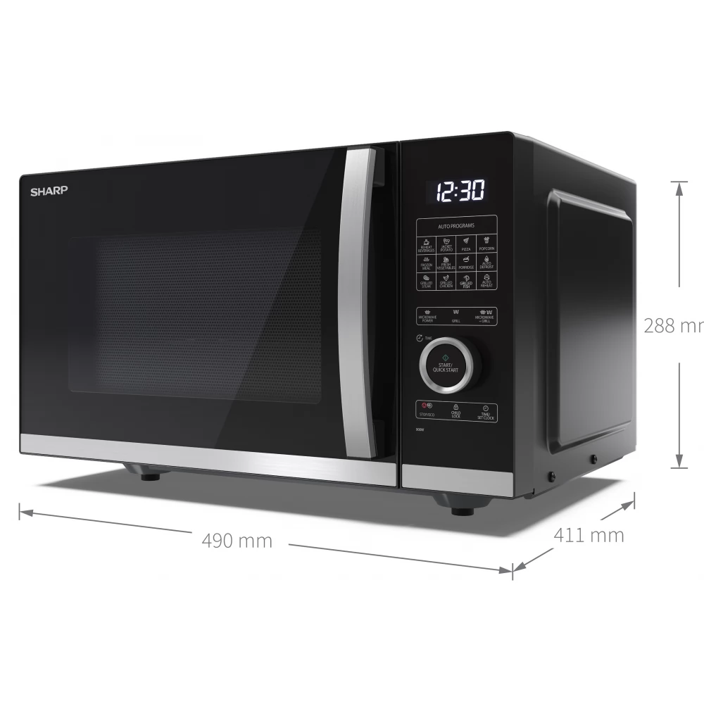 SHARP YC-QG254AEB Mikrohullámú sütő grilles Forgótányér nélküli síkágyas 900 W / 1000 W 25 l fekete