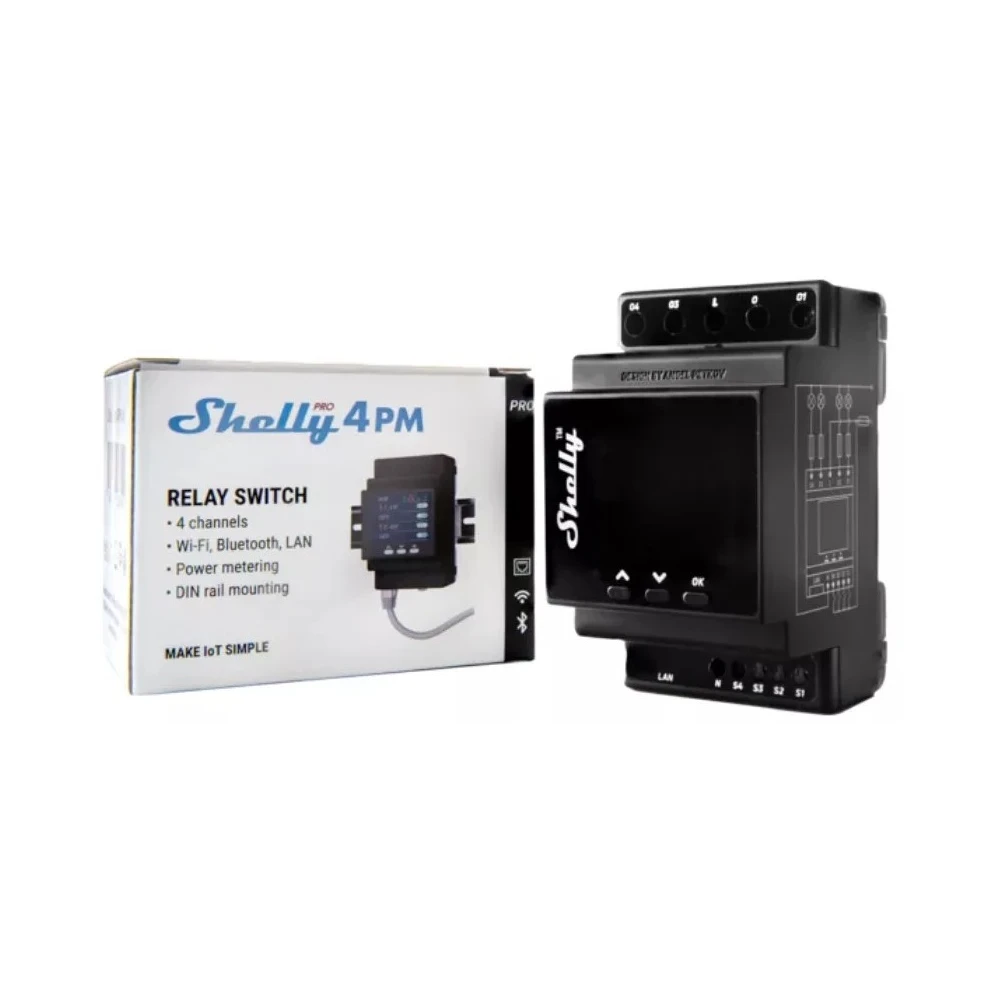 SHELLY ALL-REL-PRO4PM Pro 4PM 1 fázisú DIN-sínre szerelhető fogyasztásmérős WiFi+LAN okosrelé fekete