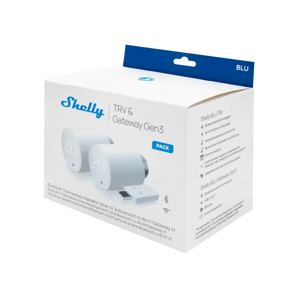 A Shelly BLU TRV egy Bluetooth-on keresztül kommunikáló okos radiátorszelep, amely lehetővé teszi a radiátoros fűtés okos szabályozását. Ezzel nem csak energiát takaríthatsz meg, hanem otthonod kényelmét is emelheted vele. A Shelly BLU TRV könnyen felszerelhető, elemes működtetésű, és hosszú üzemidővel rendelkezik. Számos okosotthon rendszerrel kompatibilis, beleértve a Shelly Cloud alkalmazást is, így távolról is vezérelheted fűtési rendszeredet. Ez a termékcsomag 1 radiátorszelepet és egy Bluetooth Gen3 átjárót is tartalmaz.