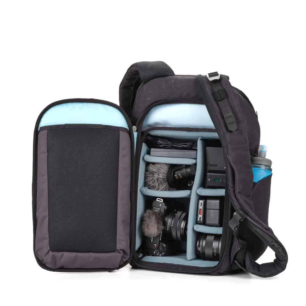 Több hozzáférési pont - A csomag hátsó és oldalsó hozzáférési lehetőségeket kínál. Az oldalsó nyílás ideális a gyors, hónalj alatti hozzáféréshez a csomag teljes eltávolítása nélkül, a hátsó lopásgátló nyílás pedig széles, akadálytalan hozzáférést biztosít a felszerelés nagy részéhez a kevésbé időigényes fotózási helyzetekben.