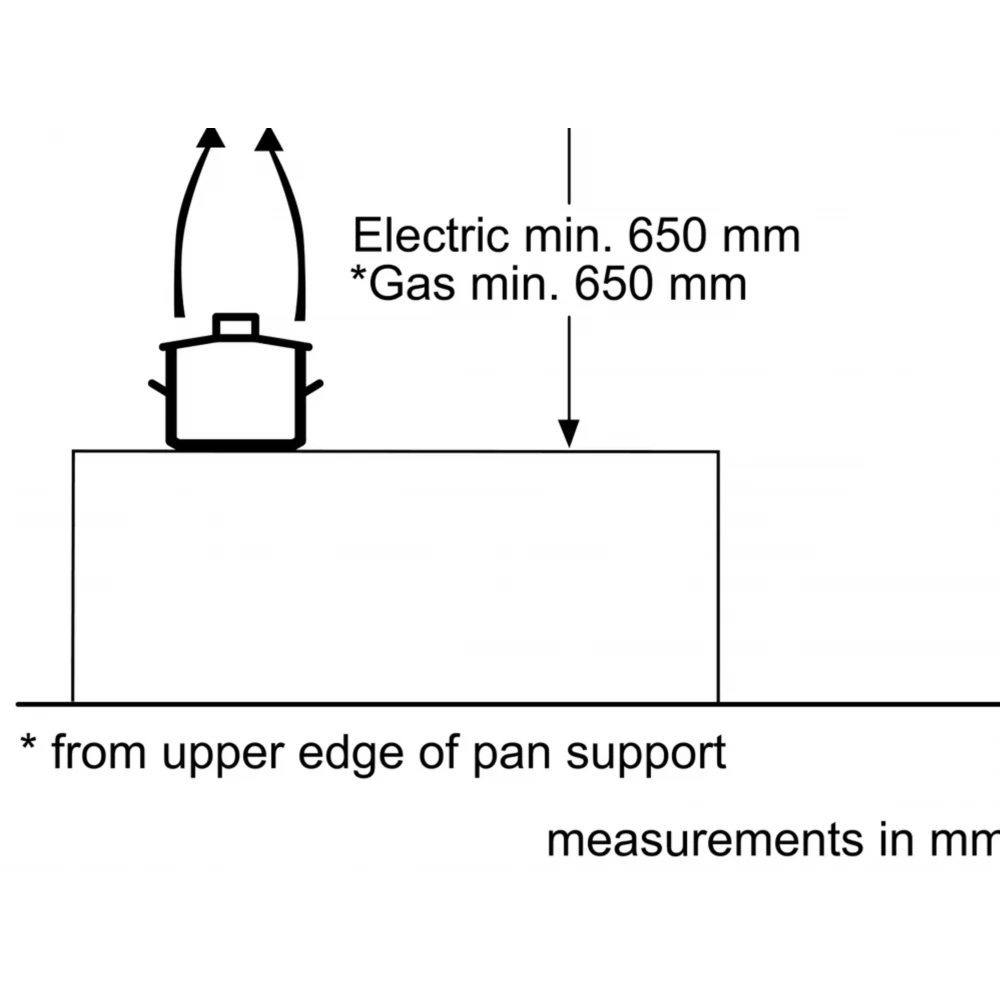 - Minimális távolság gázfőzőlap felett: 650 mm
