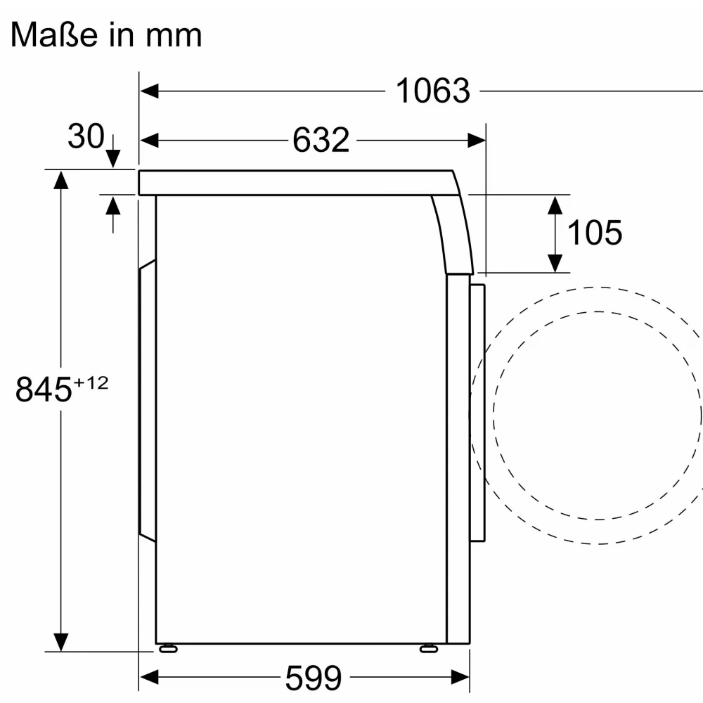 - Mélység nyitott ajtóval (90°): 1063 mm