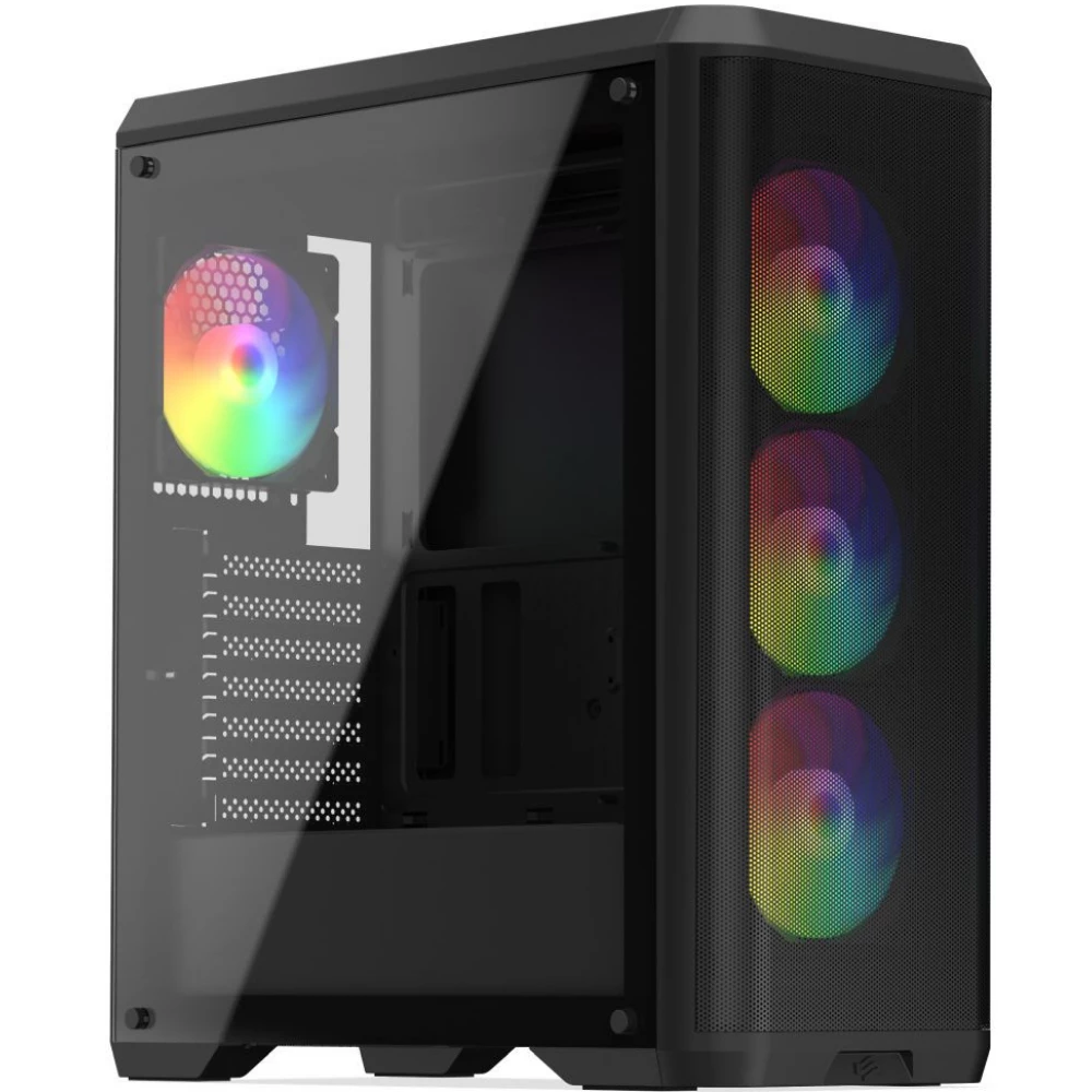 ATX formátumú Midi-torony kialakítású számítógépház beépített ARGB ventilátorokkal.