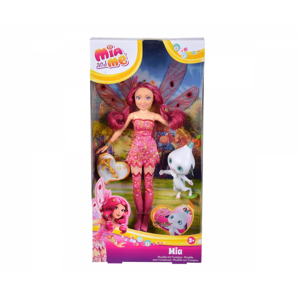 A Mia és én 3D-s számítógépes animációs sorozat alapján készült 31.5 cm magas Mia divat baba Phuddle figurával és egy hozzá tartozó varázs trombita kiegészítővel.