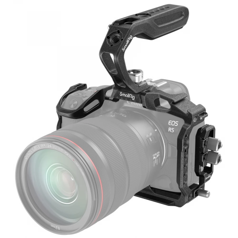 Az EOS R5 és R6 kamerákhoz kifejlesztett SmallRig "Black Mamba" 3234 tartalmaz egy ARRI felső fogantyút, egy teljes cage-et és egy kábelbilincset. Az all-in-one cage védelmet és többféle rögzítési lehetőséget biztosít a fényképezőgép tartozékai számára. Az új kialakítás egyértelmű kontúrokkal rendelkezik a fogantyú körül, így a kamera kezelőszervei továbbra is teljes mértékben hozzáférhetők. A csatlakoztatott kábelcsipesz rögzíti a HDMI-kábelt a véletlen szétkapcsolódás megakadályozása és a stabil jel biztosítása érdekében; az ARRI könnyű, mindössze 122 g súlyú felső fogantyúja ergonomikus kialakítású a kényelmes fogás és a biztos tartás érdekében. Mind a cage, mind a fogantyú több 1/4"-20 és 3/8"-16-os menetes furattal rendelkezik az olyan tartozékok, mint a magic arm és az oldalsó fogantyú támogatásához.