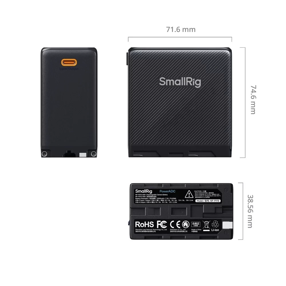 A SmallRig NP-F970 USB-C újratölthető fényképezőgép-akkumulátor egy erős, sokoldalú és intelligens, közvetlenül újratölthető akkumulátor 10 500 mAh (76,65 Wh) kapacitással. A nagy kapacitás hosszan tartó teljesítményt biztosít, és kielégíti a fényképezés közbeni energiaigényt. Az akkumulátor alján található fő port különféle eszközöket, például kamerákat, LED-es videolámpákat, monitorokat és motoros csúszkákat képes táplálni. Az akkumulátor USB-C porttal és USB-A porttal is rendelkezik az elektronikus eszközök, például okostelefonok, táblagépek és egyéb elektronikus eszközök töltésére.