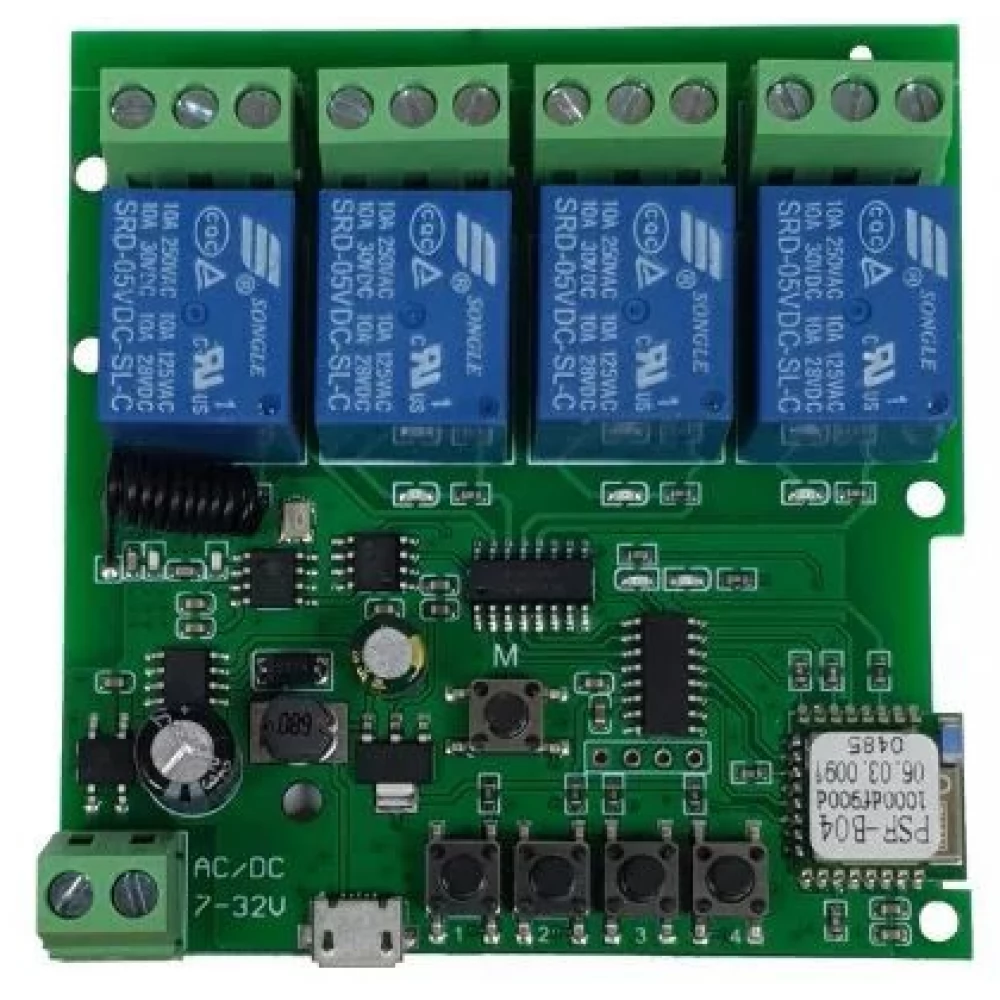 Az új R2 verzióban a négy áramkörrel az RF távirányítók párosítása már csatornánként egyesével történik, és minden RF Sonoff és SmartWise RF távirányító és fali RF kapcsoló kompatibilis vele.