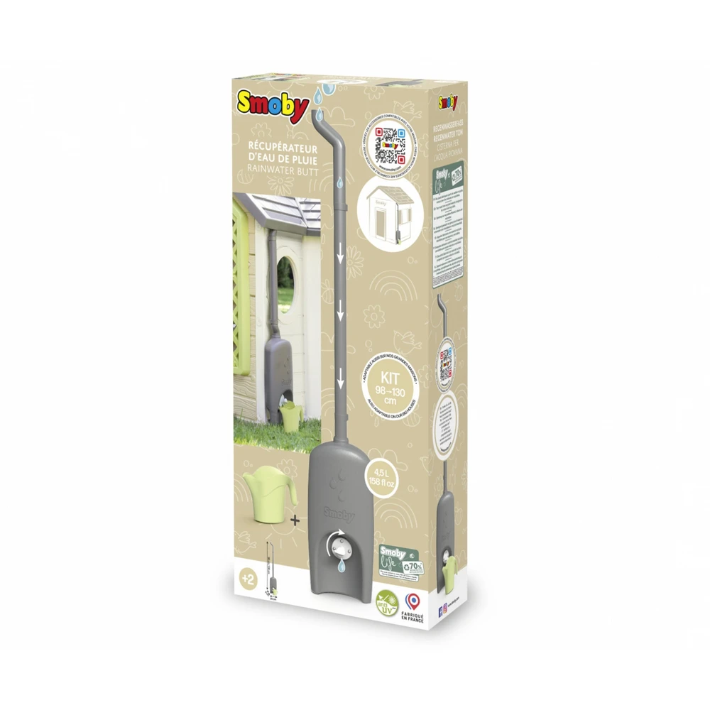 A Smoby Life esővízgyűjtő hordó tökéletes kiegészítője a játszóháznak, amely még autentikusabbá teszi a kerti játékélményt. Ez a műanyagból készült tartozék lehetővé teszi a gyerekek számára, hogy valósághű módon játsszanak a vízgyűjtéssel és öntözéssel.