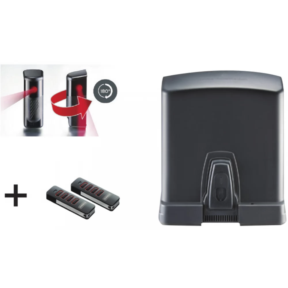 - Tolókapukhoz 12 m-es kapuszélességig és 800 kg kaputömegig, infrasorompóval és Négygombos Pearl távirányítókkal