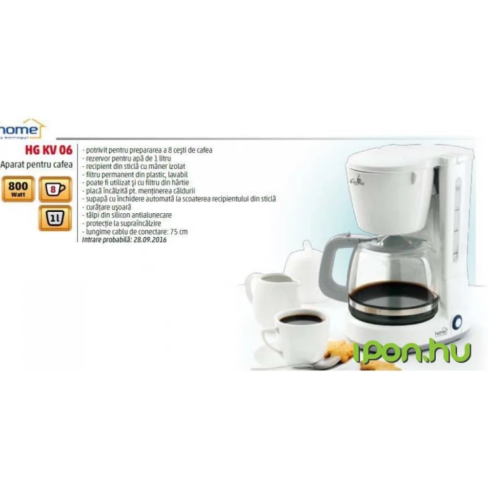 Mindene a kávézás? Ez esettben lepje meg magát és családját egy HG KV 06 típusú kávéfőzővel! A terméket masszív fehér színű műanyag borítja, valamint 1 literes űrtartalommal rendelkezik. Az átlátszó víztartályba 8 csészényi víz tölthető. Válassza a minőségi termékeket és rendeljen webáruházunkból.
