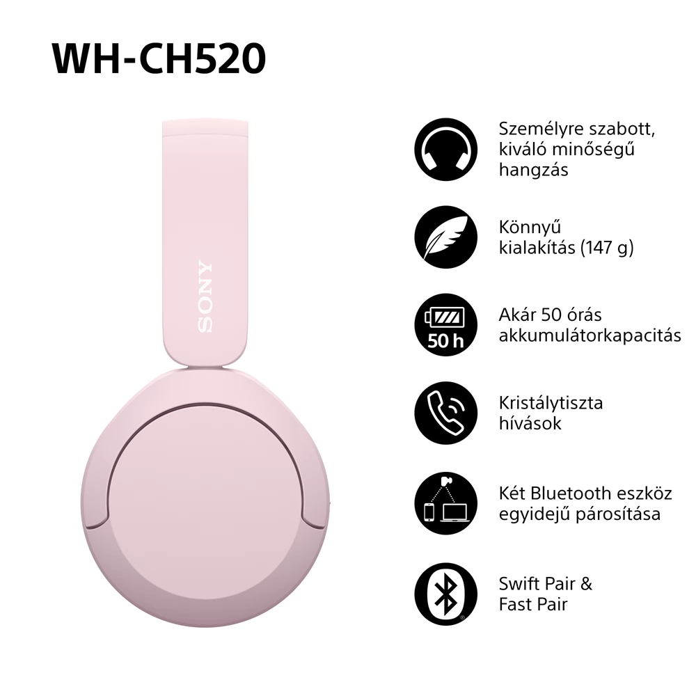 SONY WH-CH520 rózsaszín