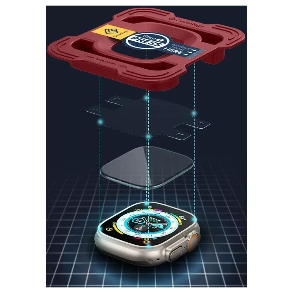 SPIGEN Caseology Snap Fit kijelzővédő üvegfólia felhelyező kerettel Apple Watch Ultra 1-3 (49mm) fekete 2db