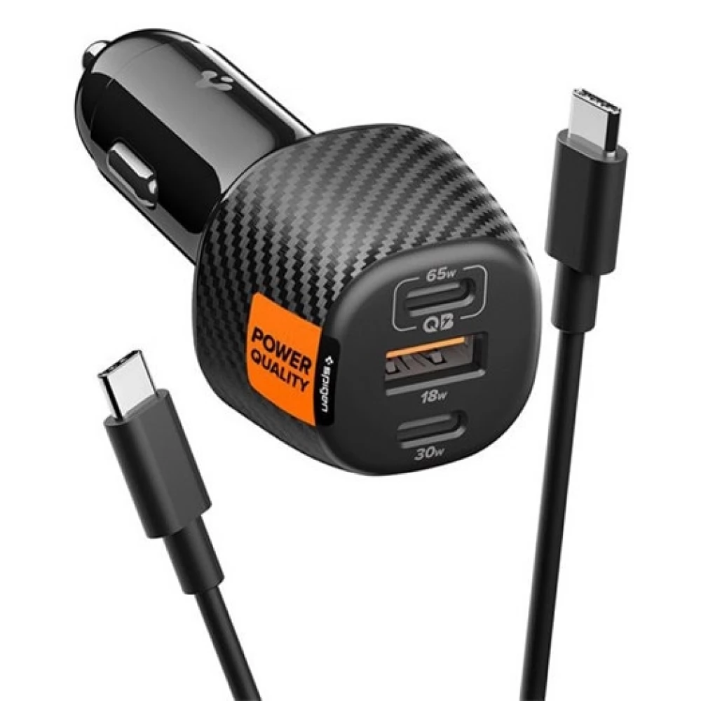 SPIGEN ESSENTIAL EV1133 autós töltő USB+2 Type-C aljzat 113W, PD gyorstöltő 3.0 + Type-C kábel.