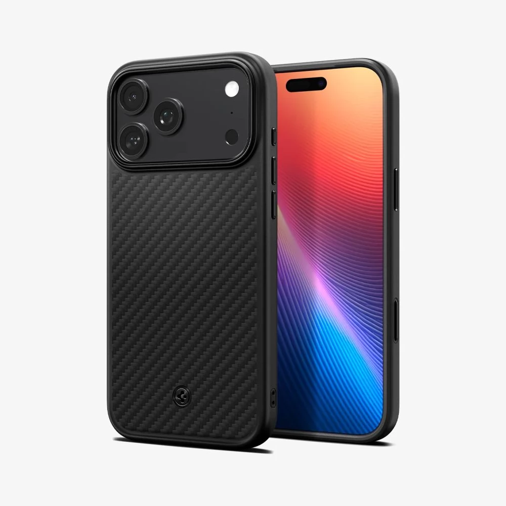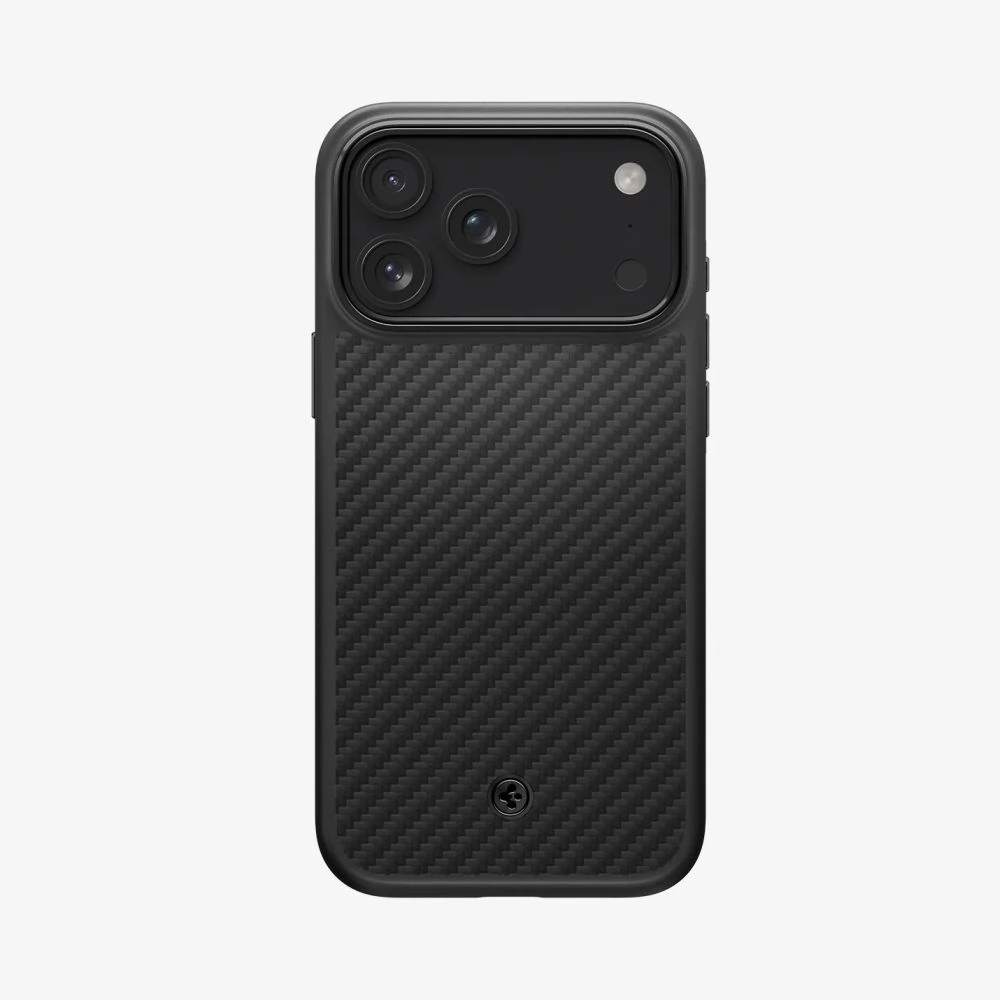 SPIGEN iPhone 17 Pro SPIGEN ENZO ARAMID telefonvédő Magsafe, karbon minta, FEKETE