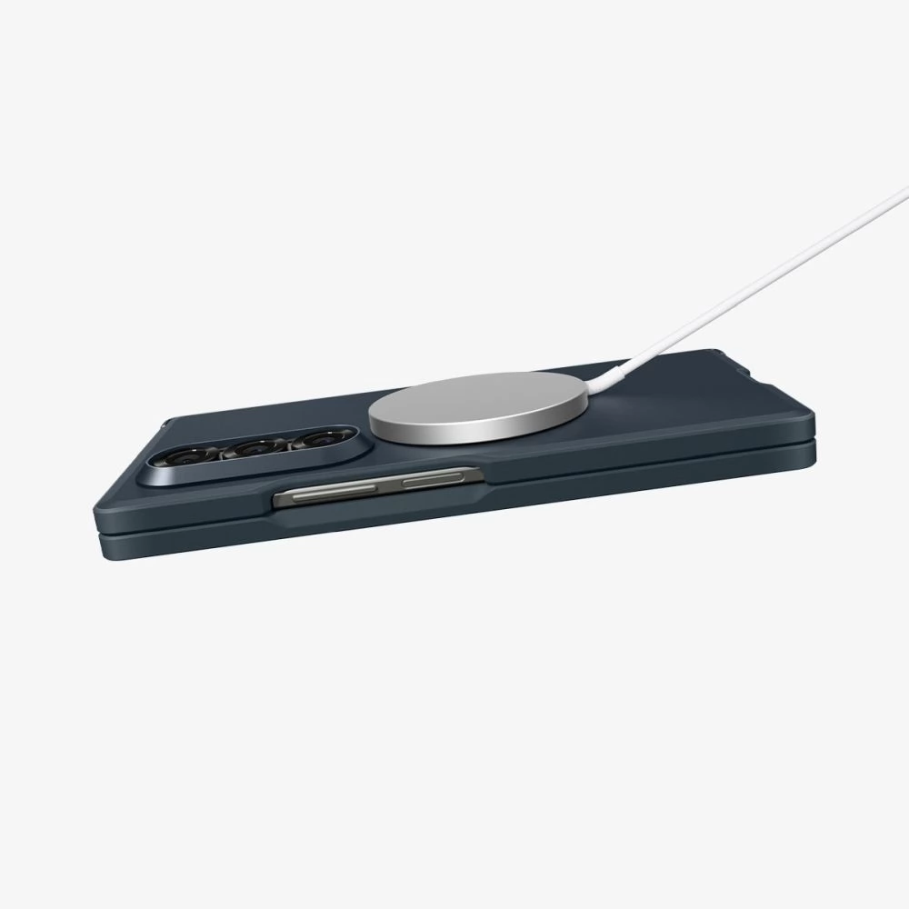 A Tough Armor Pro MagFit tok megbízható védelmet nyújt a Galaxy Z Fold 7 számára legendás kialakításával és megerősített tartósságával. Prémium PC és TPU anyagokból készült, így hatékonyan ellenáll a mindennapi ütéseknek és sérüléseknek, míg az Air Cushion technológia extra ütéselnyelést biztosít. Az új, karcsúsított zsanérvédő teljesen síkra fekszik, így nemcsak a hajlítható részt óvja, hanem még kényelmesebb használatot is nyújt. Emelt peremei védelmet kínálnak a kijelzőnek és a kamerának, miközben a tok kompatibilis marad a gyorstöltéssel és a vezeték nélküli töltéssel. A MagFit kiegészítőkkel való használat során azonban a zsanérfedél bizonyos tartozékoknál korlátozhatja a kompatibilitást.