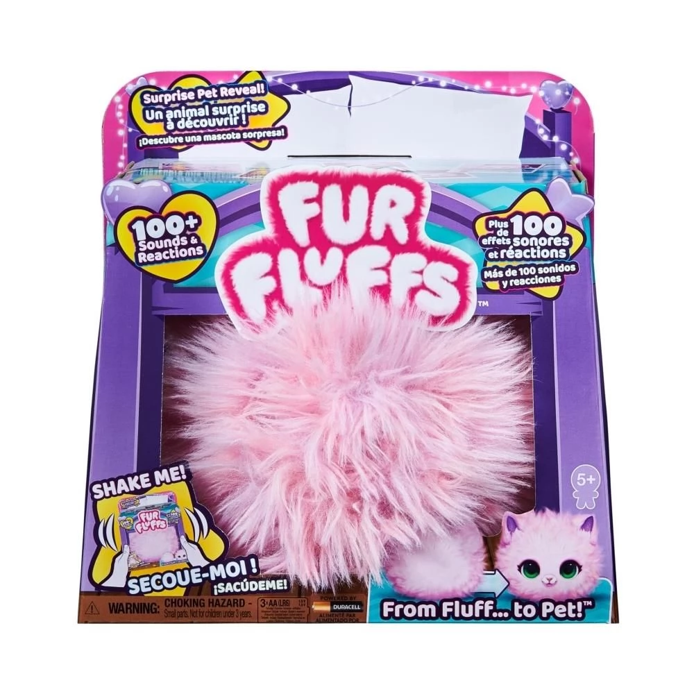 Ez a szuper aranyos szőrgombóc több mint 100 izgalmas hangra és reakcióra képes, és egy meglepetés háziállatot is rejt magában! A puha rózsaszín gombóc belsejében rejtőzik Fur Fluffs, a cica. Játssz a félénk és ijedős puha labdával, hogy előbátorítsd a rejtekéből a kiscicát, és elnyerd a bizalmát.