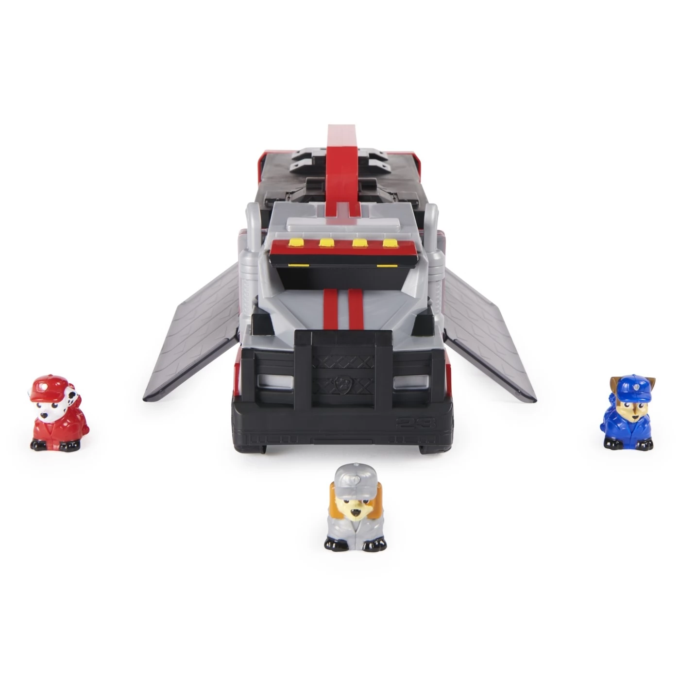 Mancs Őrjárat Micro Movers Al tároló teherautója szett 3 darab figurával. A teherautó fülkéje és a 2 oldala kinyitható a fülkében egy darab, a hátsó részben 10 darab Micro Movers figura tárolására alkalmas.