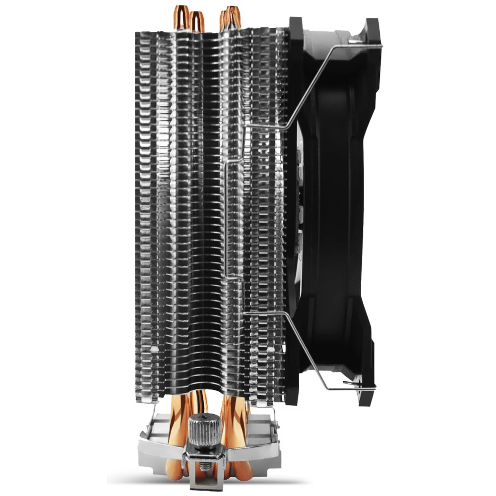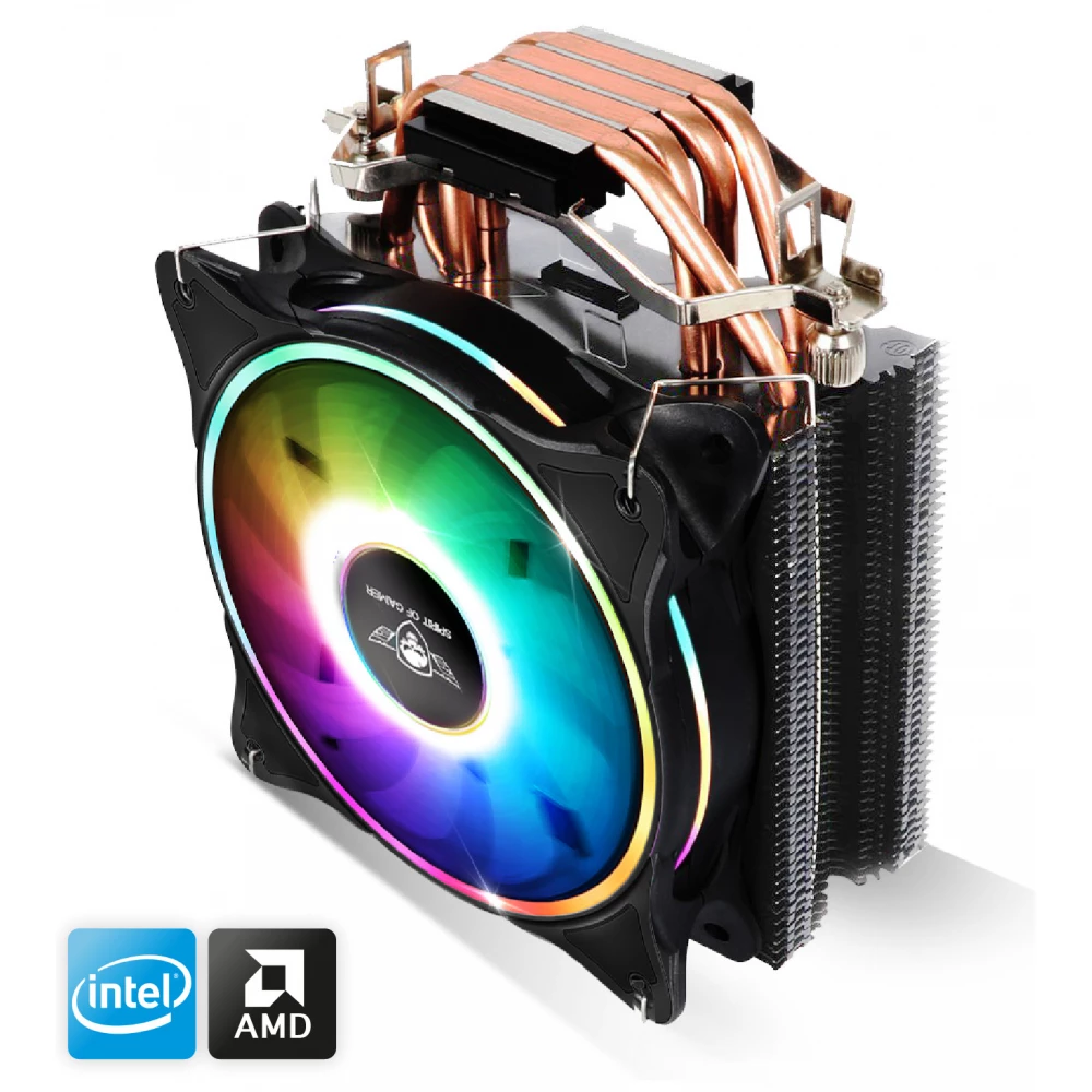 Torony kialakítású, hővezető csöves univerzális CPU hűtő egy darab 120mm-es vezérelhető, gyűrűs ARGB világítású ventilátorral és PWM sebesség szabályozással.