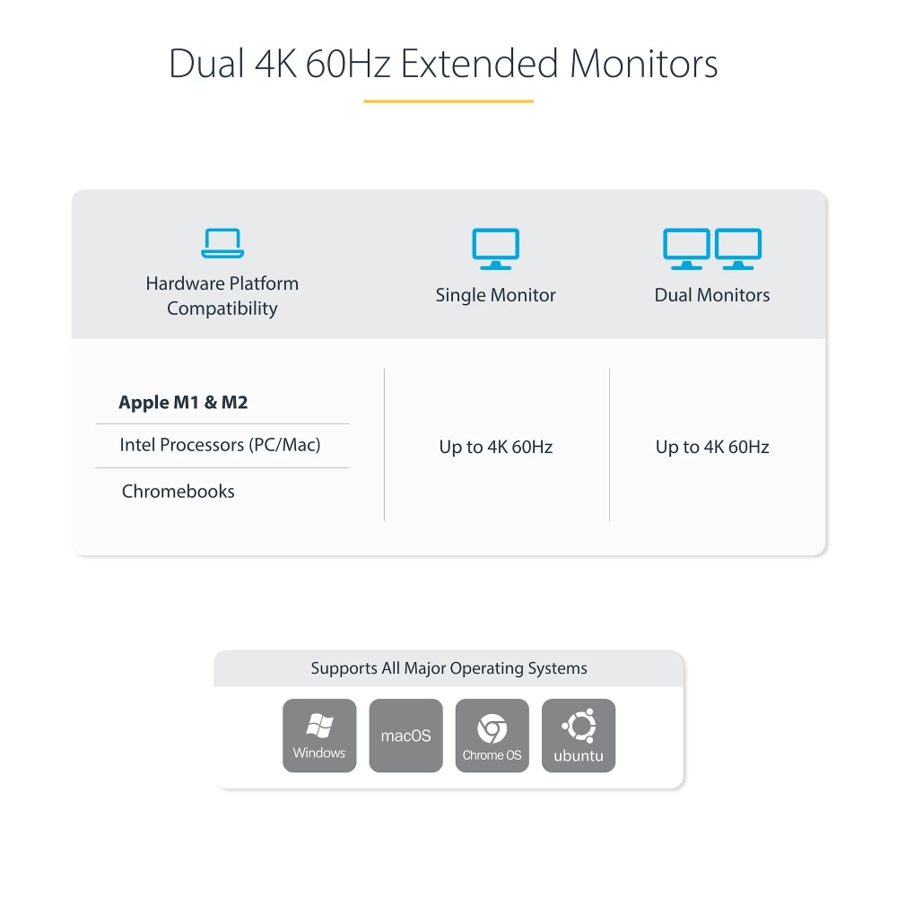 - GARANTÁLT KOMPATIBILITÁS: A DisplayLink tanúsítvánnyal rendelkező Dual-Host KVM-dokkoló támogatja a kettős megjelenítést M1/M2/M3 Pro/Max MacBookokon; Vegyes operációs rendszerrel működik (Windows, MacOS vagy Chrome OS kombinációja); Működik USB-C, Thunderbolt 4/3 és USB-A laptopokkal (USB-C-A kábel nem tartozék)