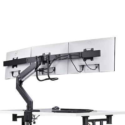 Ezt a keresztrúd monitor asztali tartót úgy tervezték, hogy támogassa akár három 27 hüvelykes kijelzőt, így ergonomikus többmonitoros beállítást hoz létre, amely kiterjedt megtekintési területet biztosít a termelékenység érdekében. A beépített fogantyú lehetővé teszi az összes monitor egyidejű mozgatását, míg a rugós támogatású kar többféle beállítást tesz lehetővé a különböző ergonómiai igényeknek megfelelően.