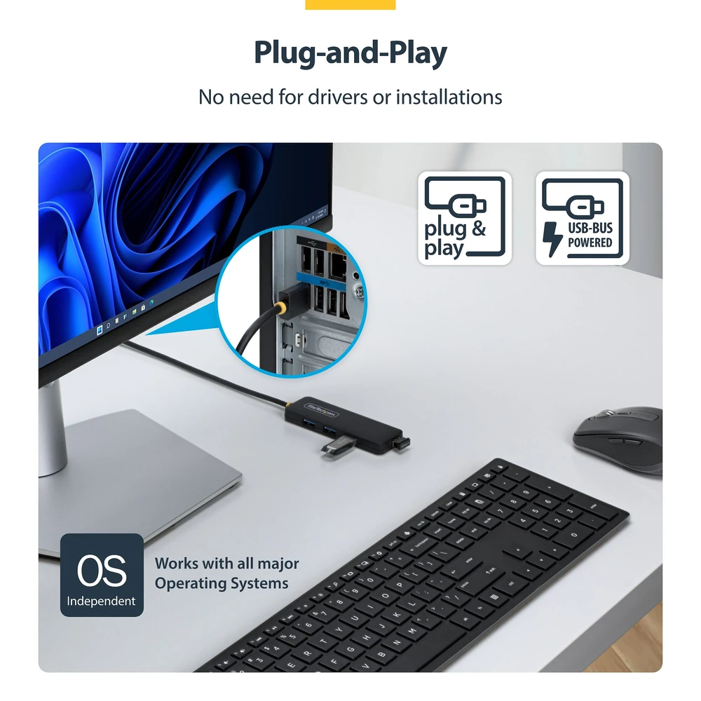Operációs rendszertől független és illesztőprogram-mentes, ez a hub Windows, macOS, ChromeOS és Linux rendszerekkel működik. Csak csatlakoztassa, és máris elkezdheti használni.