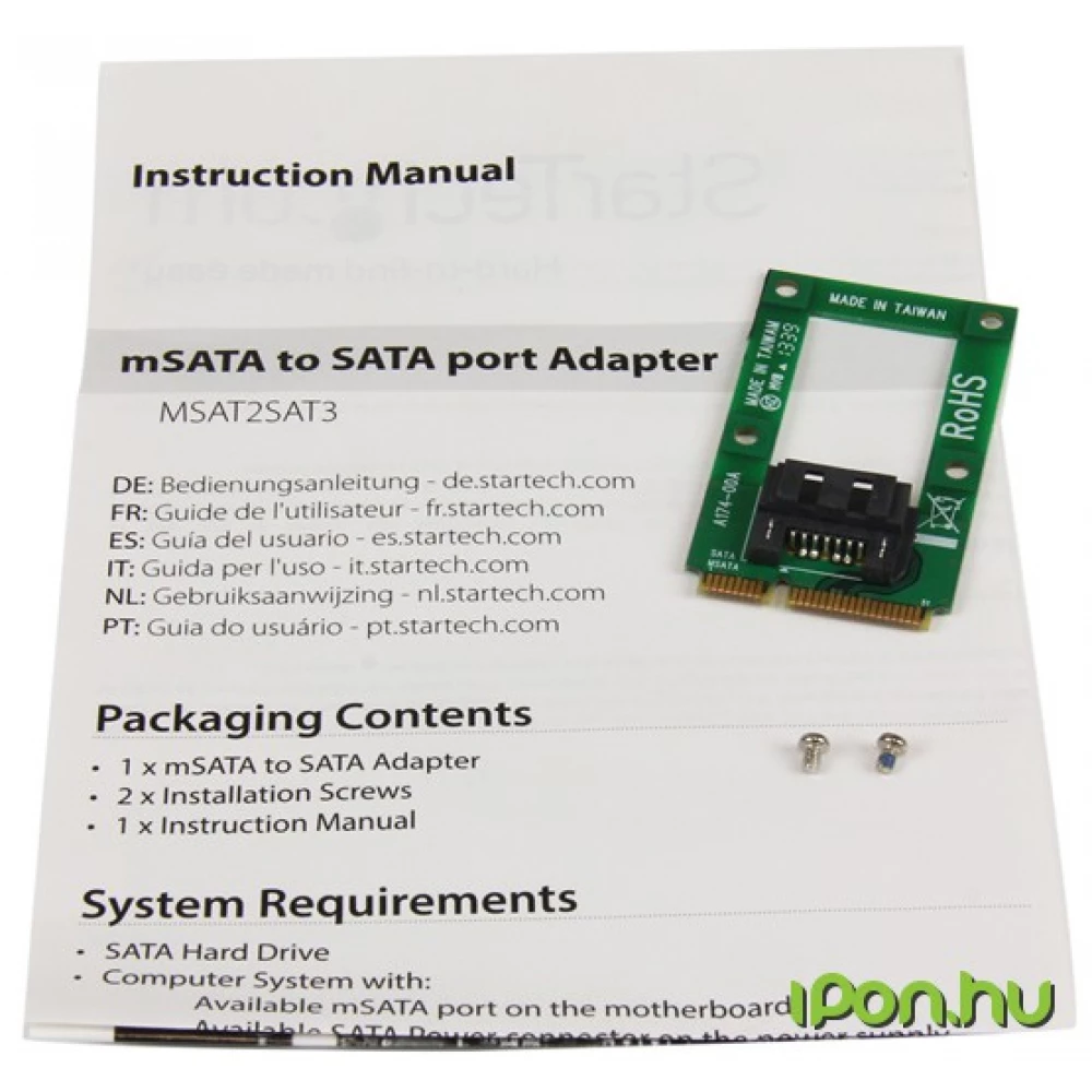 STARTECH mSATA SATA Átalakító Zöld 7cm MSAT2SAT3