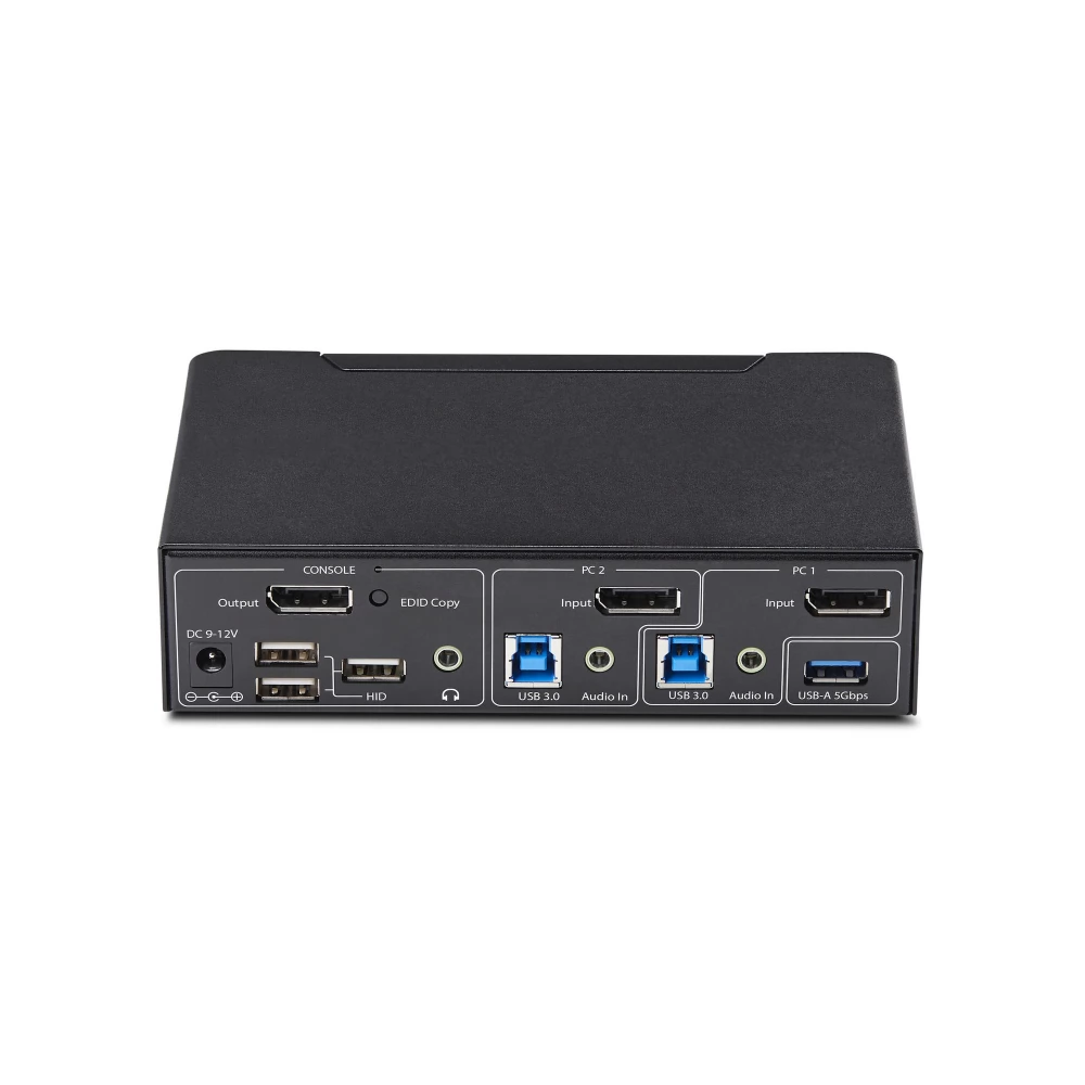 Ez a DisplayPort KVM kapcsoló lehetővé teszi a felhasználók számára, hogy két, USB-A és DisplayPort porttal ellátott asztali számítógép között váltsanak. Lehetővé teszi egy 4K 60Hz-es DisplayPort monitor, egy billentyűzet, egy egér, két USB 5 Gbps-os eszköz, egy sztereó audio kimeneti eszköz és két további USB 2.0 eszköz megosztását.