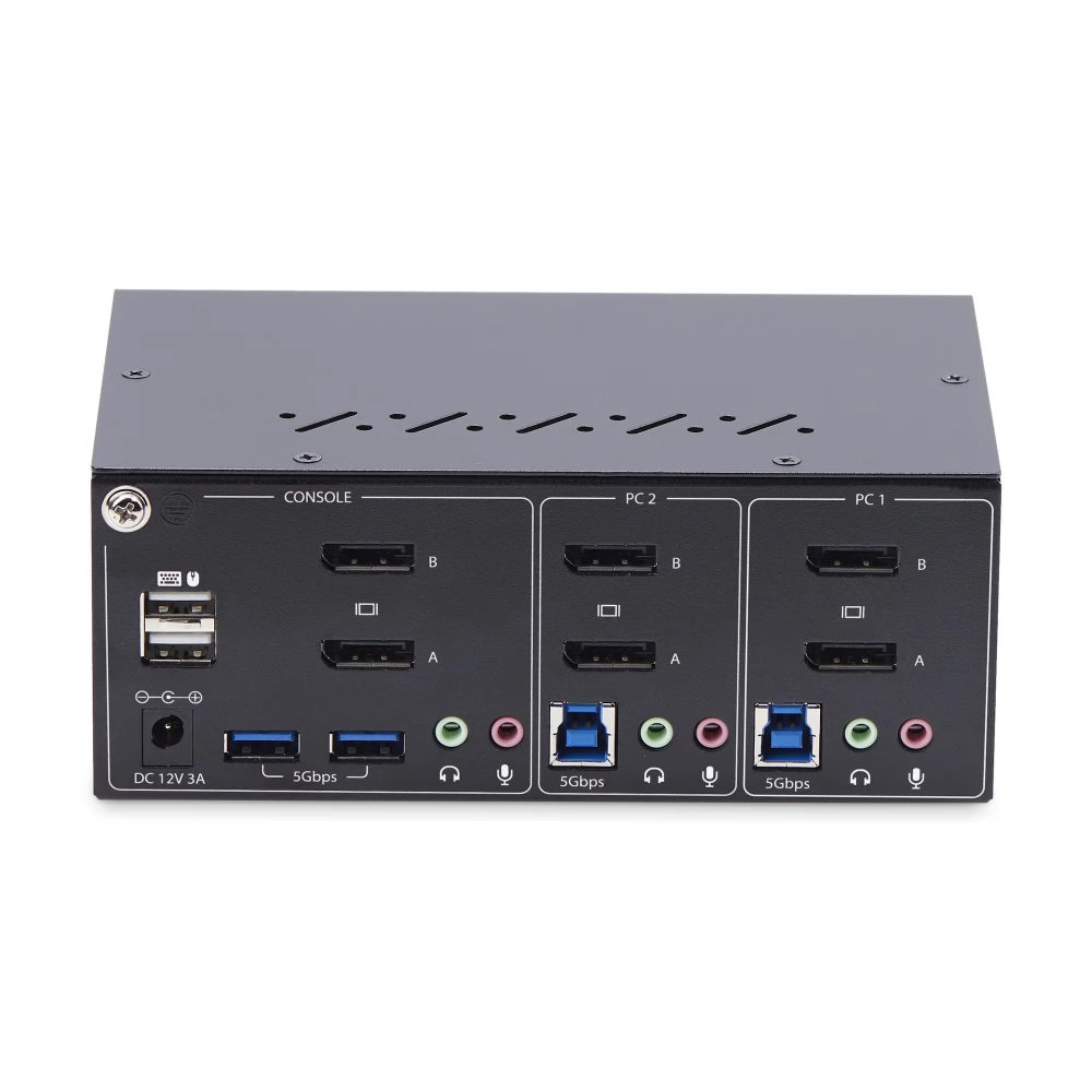 - DUAL 4K 60HZ és USB 5GBPS: A TAA-kompatibilis DisplayPort 1.2 KVM Switch akár két 4K 60Hz-es DisplayPort monitort támogat két USB 3.2 Gen 1 (5 Gbps) hub porttal és két USB 2.0 HID porttal; Ideális CAD/CAM, videószerkesztő és tartalomkészítő alkalmazásokhoz