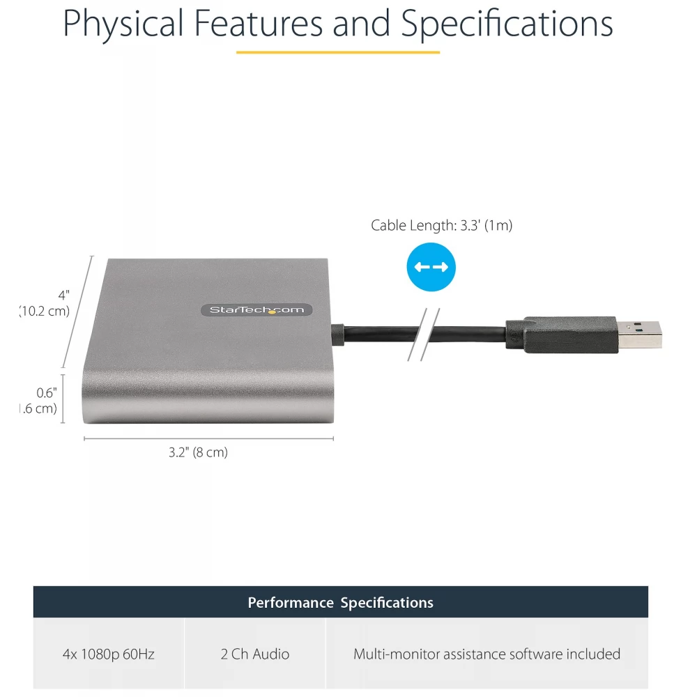 STARTECH USB 3.0 to 4x HDMI Adapter - External Video and Graphics Card