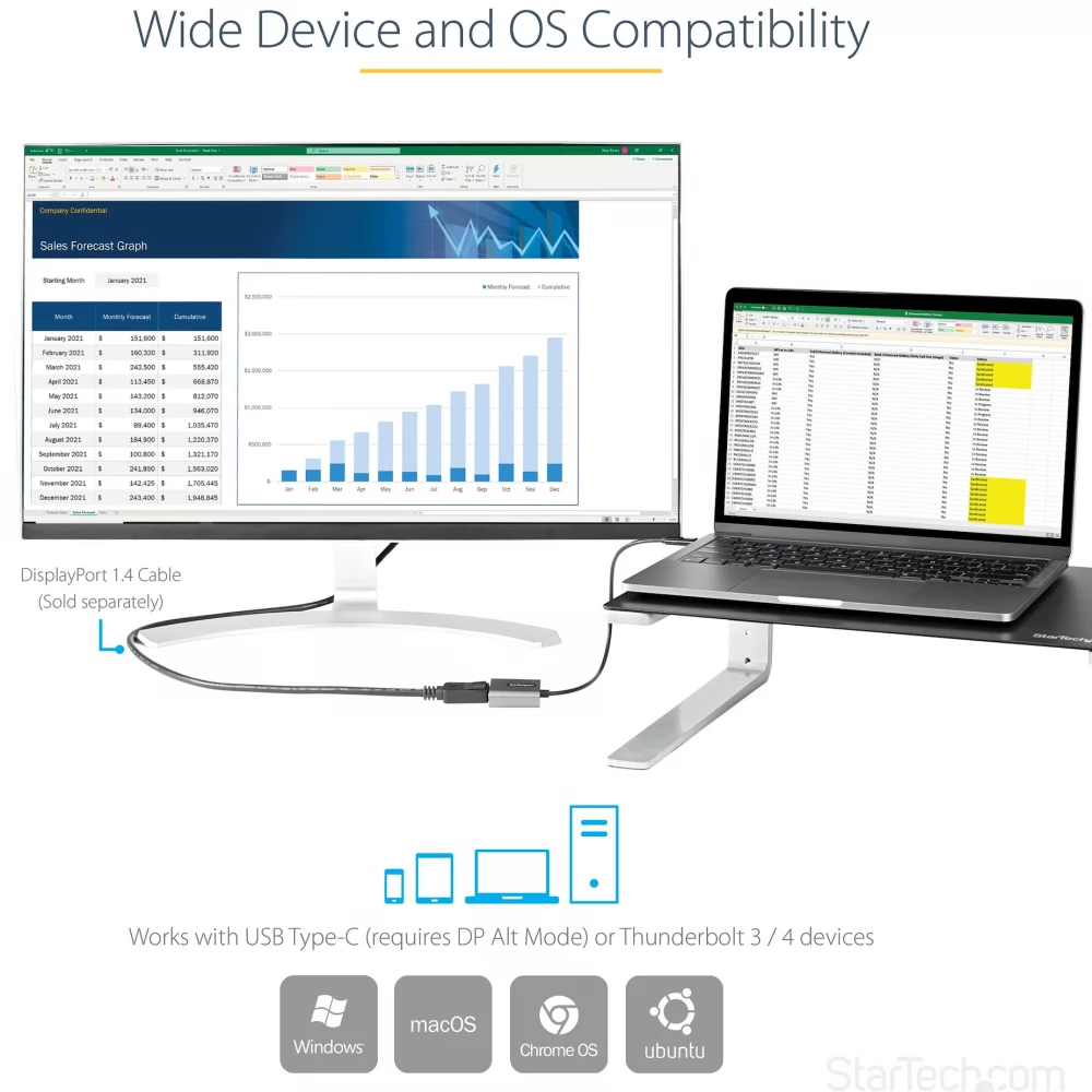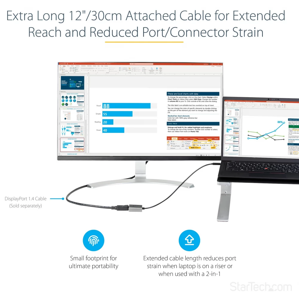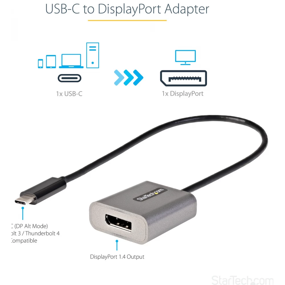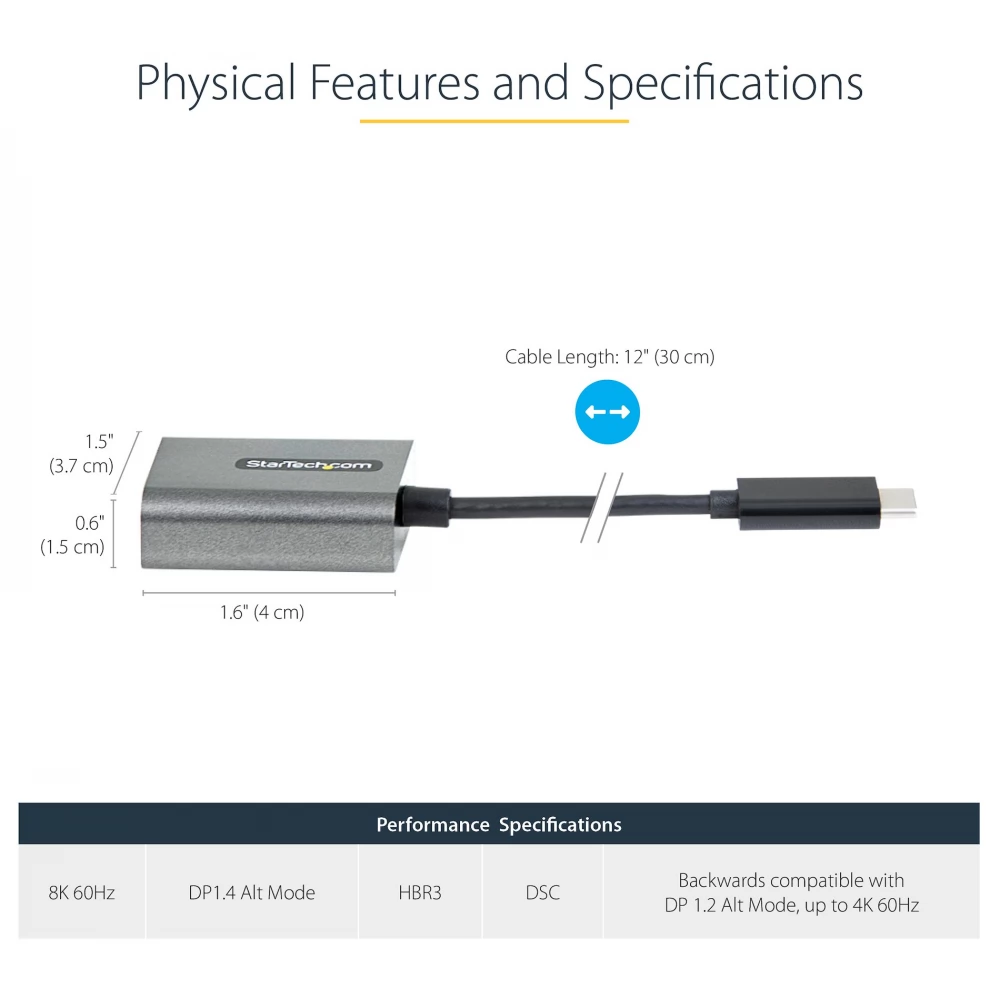 STARTECH USB 3.1 Type C DisplayPort 1.4 Átalakító Szürke 31cm CDP2DPEC