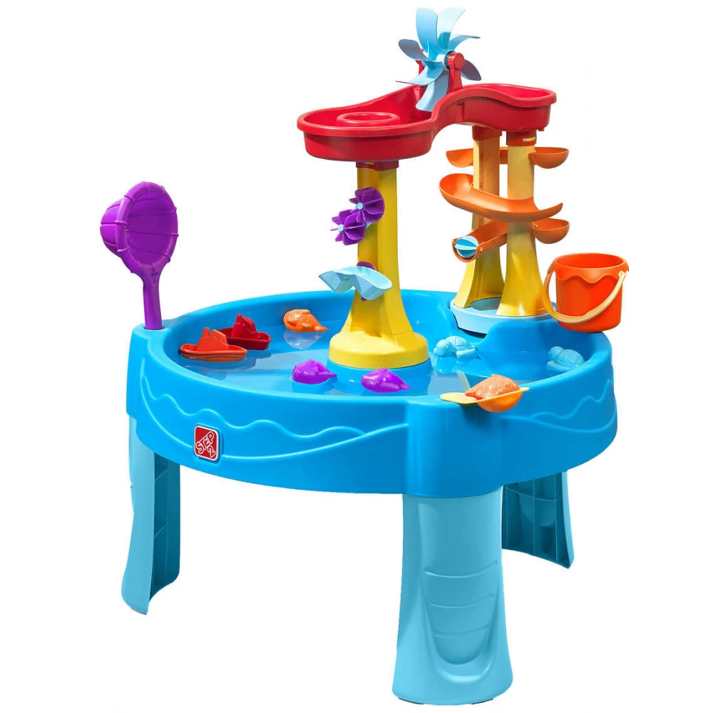 A Step2 kerti vizes játszó asztalai remek szórakozást nyújtanak a gyerekeknek a meleg nyári napokon, miközben a vízzel feltöltött asztallal játszanak.