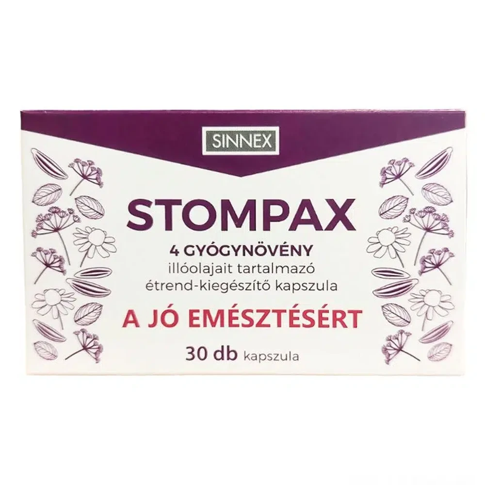 Stompax 4 GYÓGYNÖVÉNY illóolajait tartalmazó étrendkiegészítő kapszula Összetevők:szorbit,hipromellóz(Hidroxipropil-metil-cellulóz),magnézium-sztearát,édeskömény olaj(Aetheroleum foeniculi), kömény olaj(Aetheroleum...