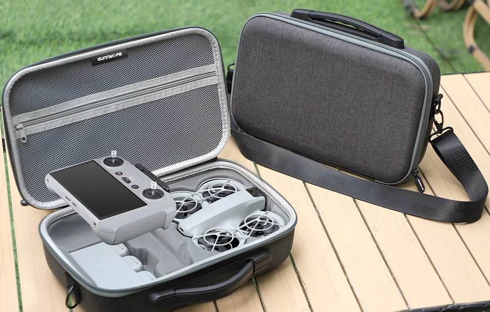 A Sunnylife NE-B919 táska lehetővé teszi, hogy kényelmesen tárolja és szállítsa DJI Neo készülékét a tartozékokkal együtt. Elegendő helyet kínál nemcsak a drón, hanem a DJI RC 2 vezérlő, a töltő hub, négy akkumulátor és olyan apróságok, mint az objektívszűrők, tartalék propellerek, csavarhúzó és töltőkábelek elhelyezésére is. Emellett tartós, sérülésálló anyagokból készült, így hatékonyan védi a felszerelését az ütésektől.