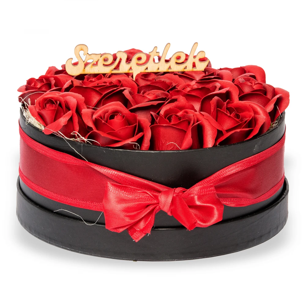 Ez a gyönyörű szappanrózsa box egy elegáns fekete rózsadobozban tartalmaz vörös színű szappanrózsákat. Az L méretű doboz tökéletes ajándék minden alkalomra, legyen szó születésnapról, évfordulóról vagy más különleges eseményről.
