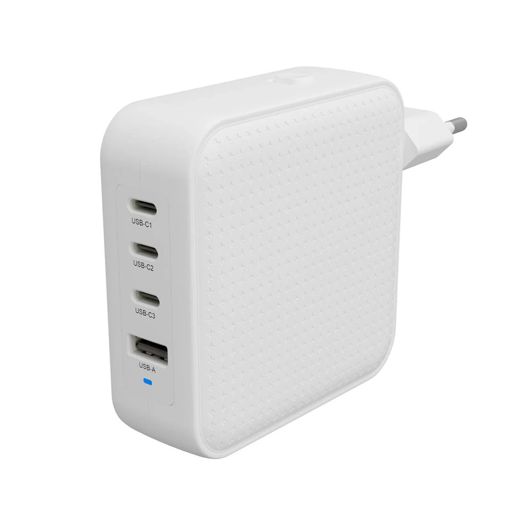A HyperJuice 100 W-os USB-C GaN töltő akár 4 eszközt is képes egyidejűleg táplálni három USB-C portjával és egy USB-A portjával, így gyorsan feltöltheti laptopját, telefonját, táblagépét vagy fejhallgatóját. Kompakt kialakításának és a mellékelt utazási adaptereknek köszönhetően minden megtalálható benne, ami a globális utazáshoz szükséges. Ezenkívül könnyen átalakítható rugalmas asztali töltővé a mellékelt C8 adapterrel. Tökéletes megoldás arra, hogy feltöltött és kapcsolatban maradjon, függetlenül attól, hogy hol tartózkodik a világon.
