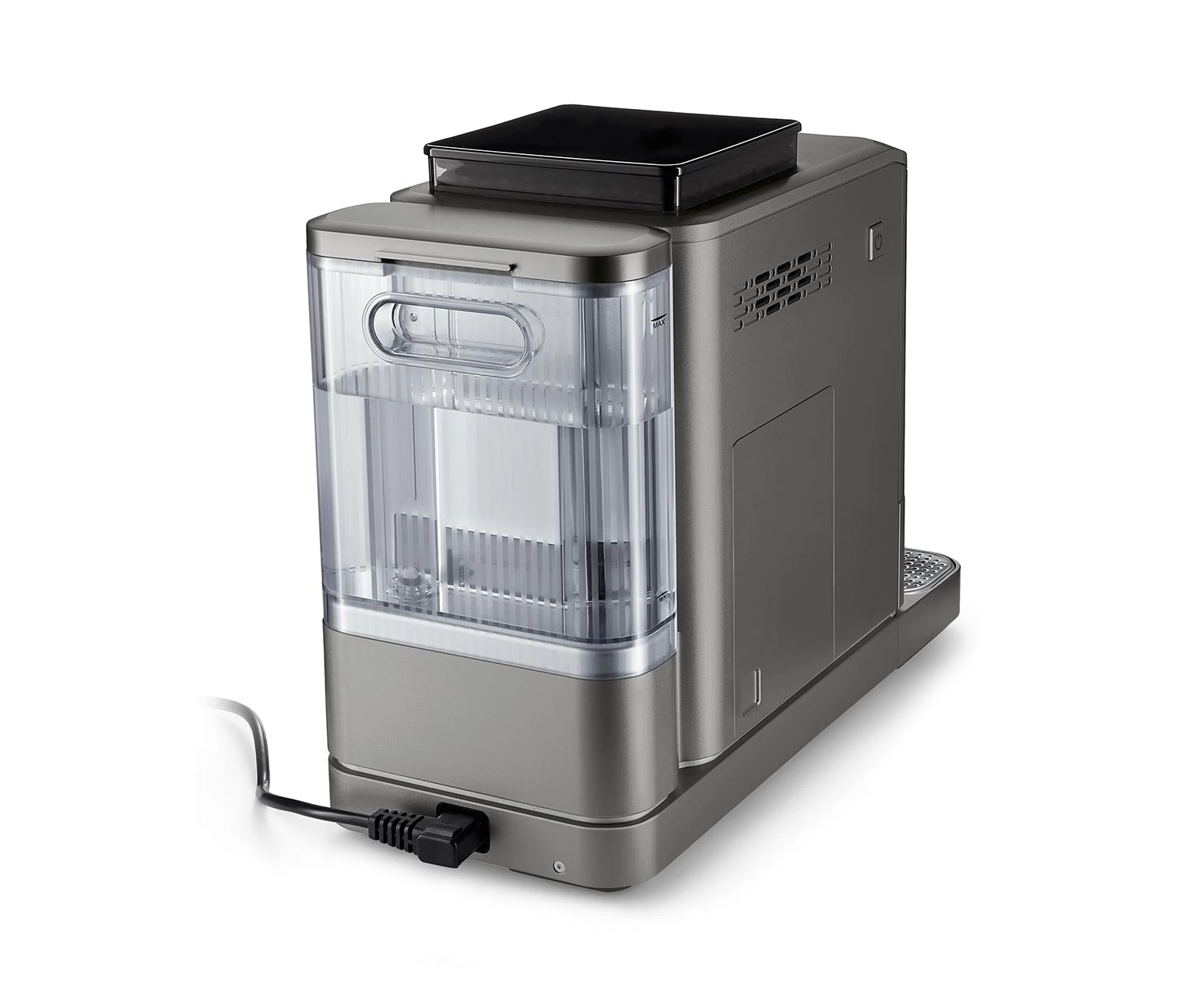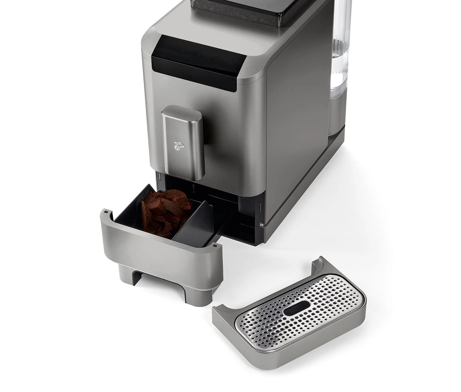 1,4 literes víztartály, amely oldalról is kivehető, így a kávéfőző a konyhai faliszekrények alá is elhelyezhető