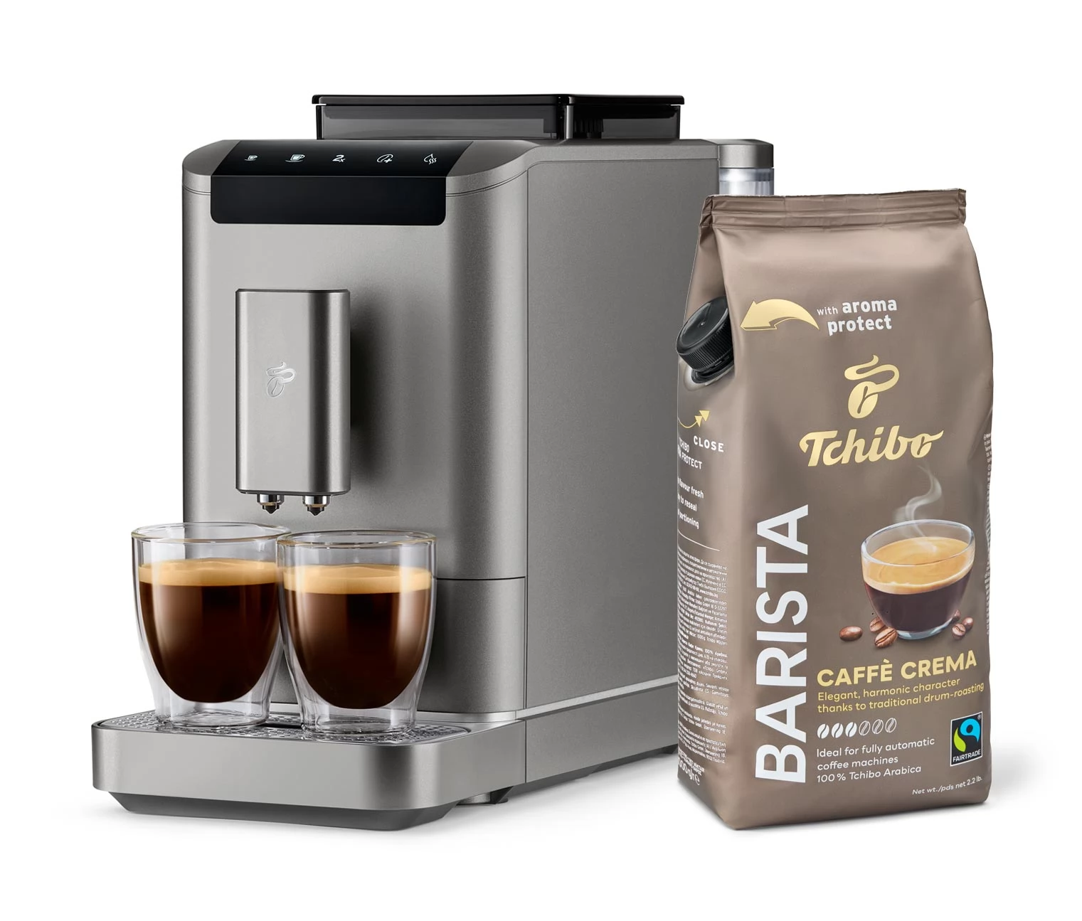 TCHIBO Esperto2 Caffè 2 automata kávéfőző keskeny titán Szürke