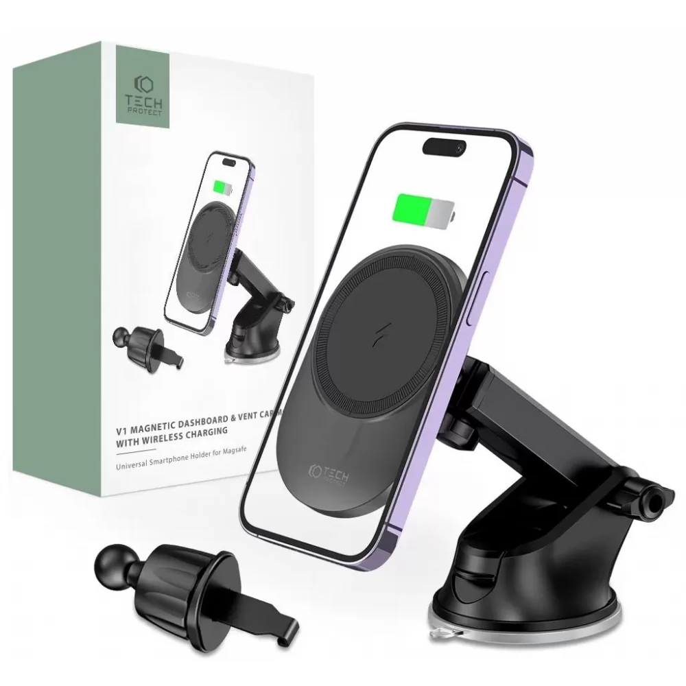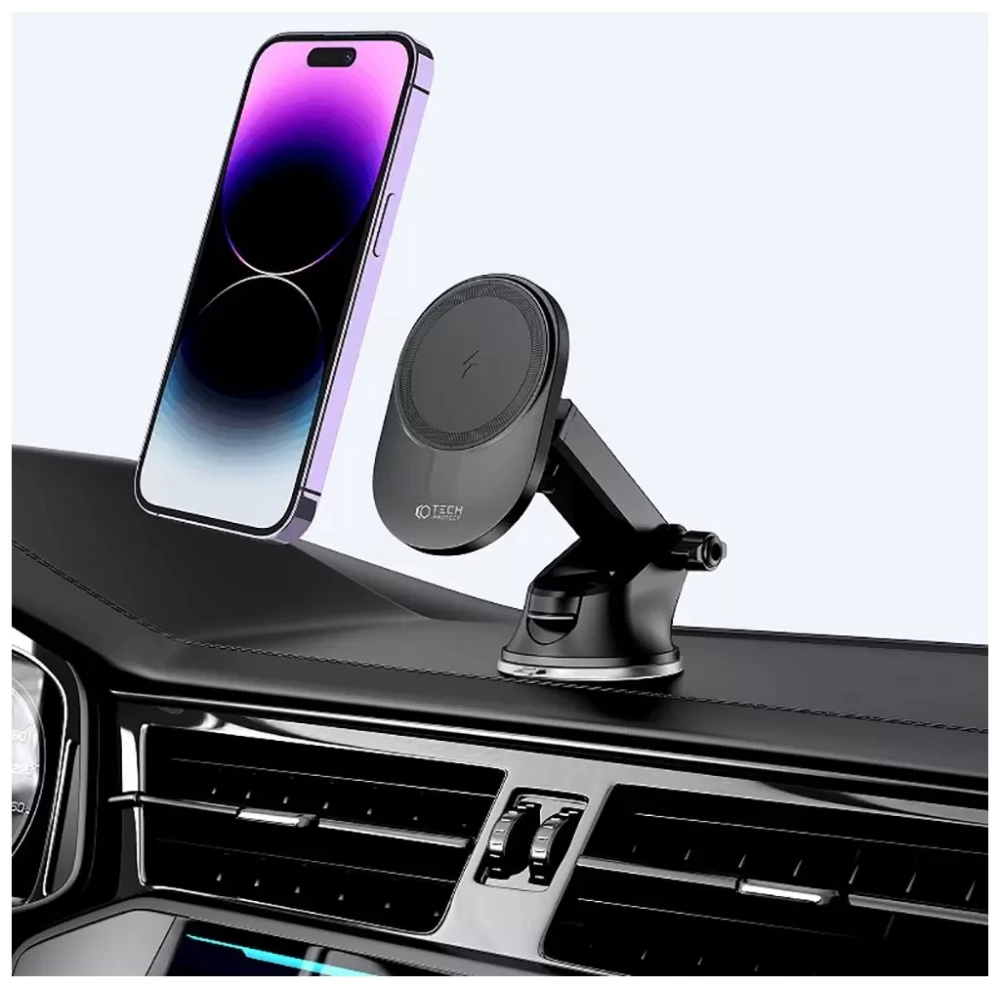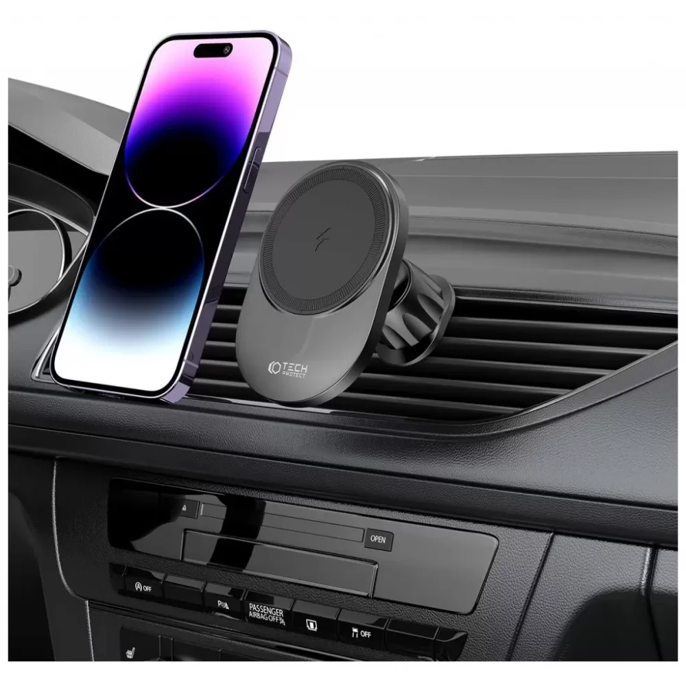 A Tech-Protect MM15W-V1 egy kényelmes autós tartó és egy szupergyors vezeték nélküli töltő kombinációja, amely támogatja a MagSafe technológiát 15 W-os maximális teljesítménnyel.