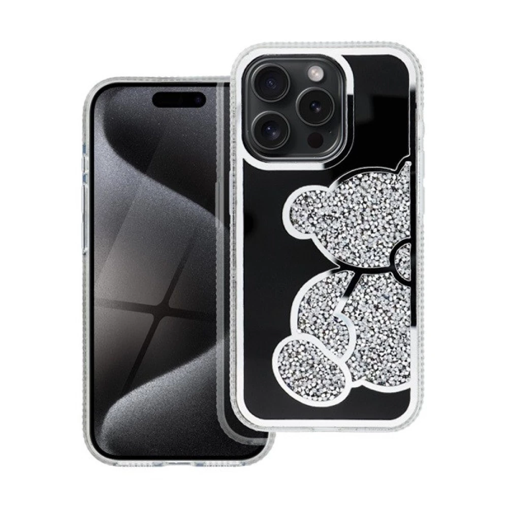 Teddy Bear iPhone 14 Pro csillogó köves tok. ezüst