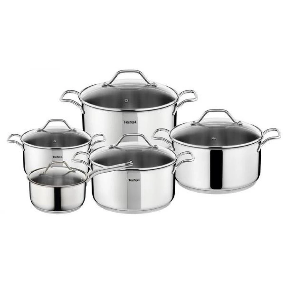 A Tefal A702SC84 Edénykészlet egy 10 db-os (5 edény + 5 fedő), hosszú élettartamú, magas minőségű rozsdamentes acél edénykészlet. Az edények szegecselt nemesacél nyéllel vannak ellátva, továbbá tartozék a gőzkieresztő nyílással ellátott üvegfedő.